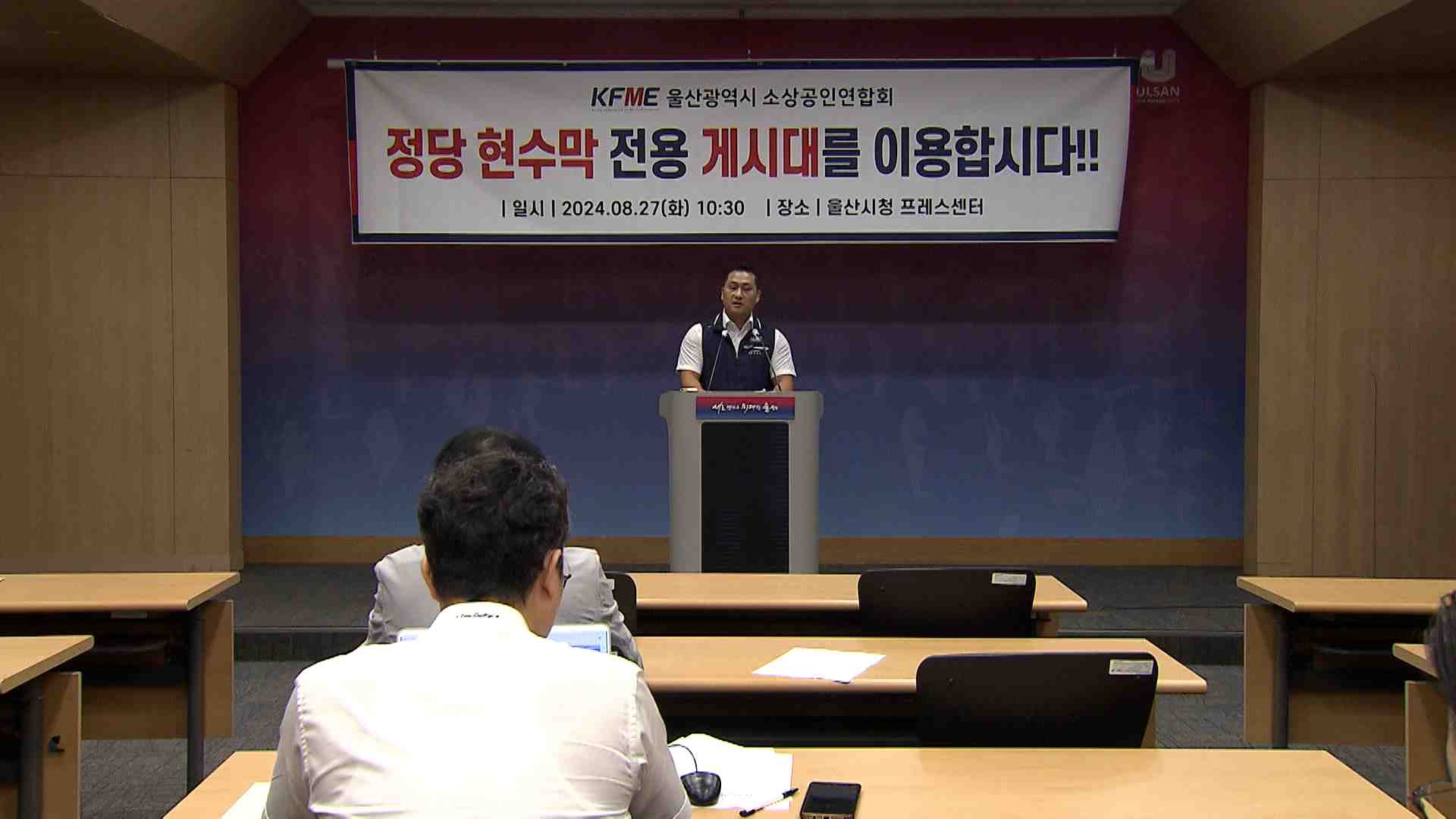 울산소상공인연합회는 오늘(8/27) 기자회견을 열고 정당현수막 전용게시대 이용을 각 정당에 호소했습니다. 이들은 정당현수막 전용게시대 이용을 규정한 조례가 무효라는 대법원 판결 이후 정치현수막이 다시 난립해 도시 미관을 해치고 있다고 지적했습니다. 또 지역 정치권이 먼저 나서서 정당현수막 전용게시대를 적극 ...