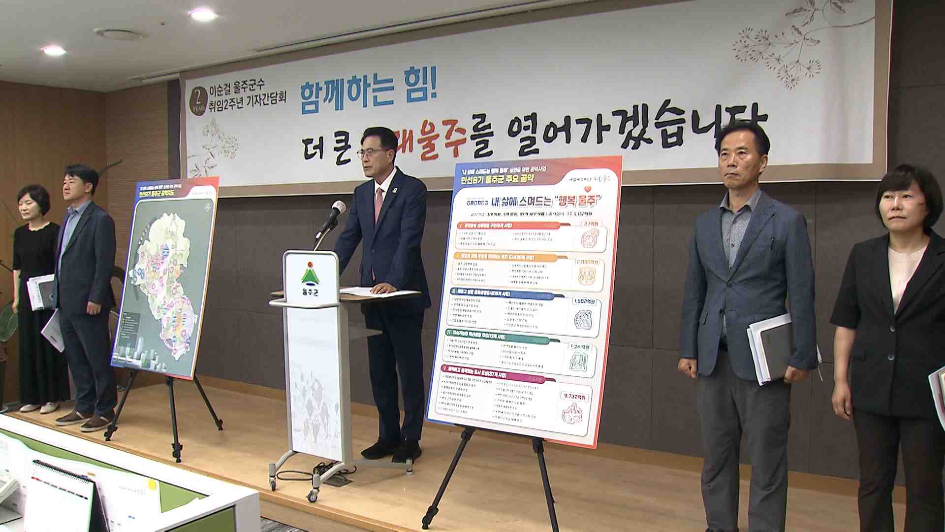 이순걸 울산 울주군수가 취임 2주년을 맞아 기자회견을 열고 지난 2년 동안 주요 군정 성과와 앞으로 군정 운영 계획을 밝혔습니다. 이 군수는 군립병원과 영남알프스 케이블카 개발사업의 순조로운 행정 절차 진행을 주요 성과로 꼽았습니다. 남은 임기 동안에는 세계 최대 식물원과 명선도 해상보행교, 근로자 복지회관 ...