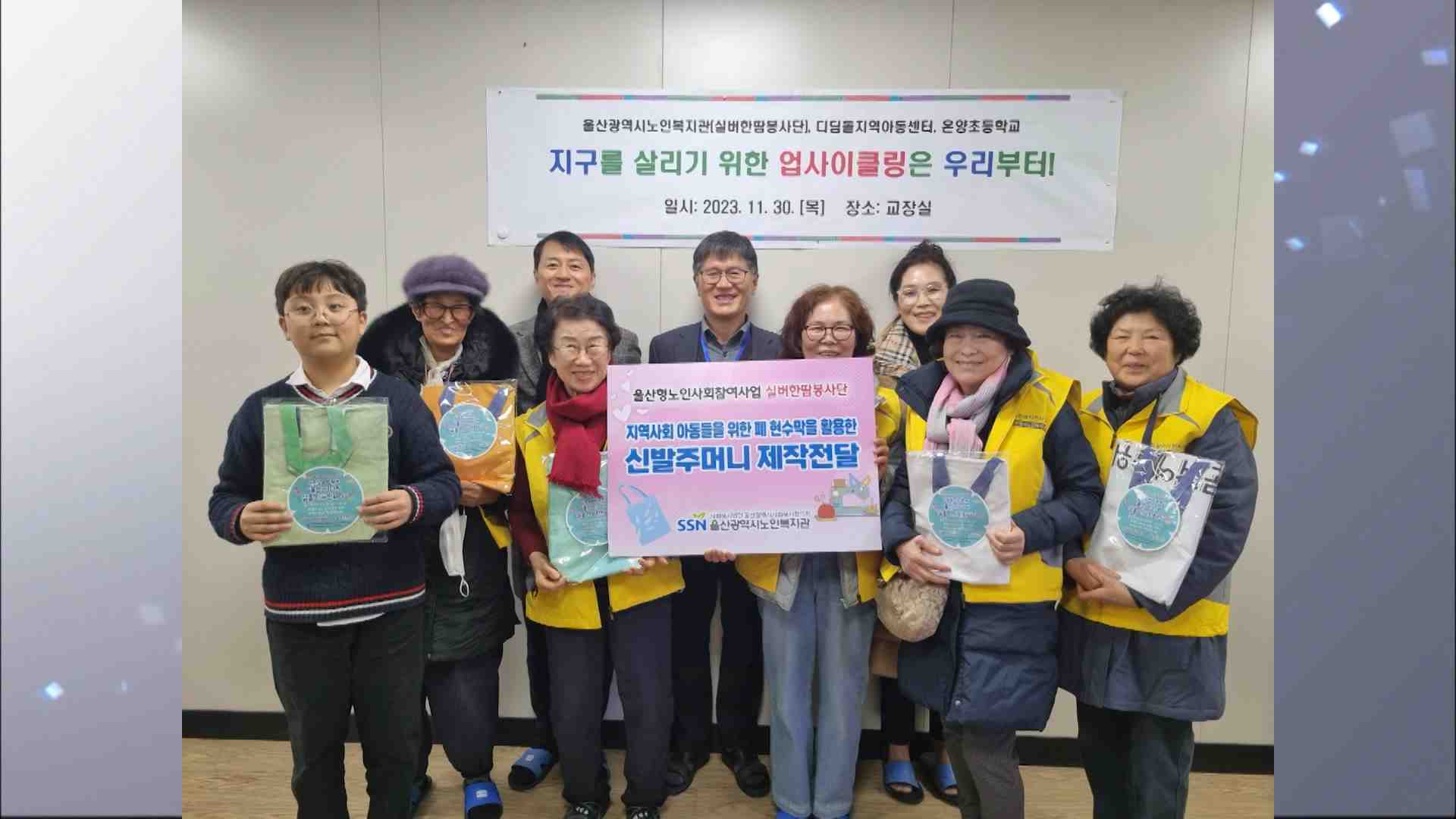울주군 온양초등학교와 지역사회가 협력해 폐현수막으로 내년 신입생에게 증정할 신발주머니를 만들었습니다.온양초등학교 전교 부회장인 김예찬 학생은 폐현수막 소각으로 인한 탄소 배출을 방지할 방법으로 신발주머니 만들기를 제안했습니다.이 제안에 따라 지역 사회단체가 폐현수막을 수거하고 신발주머니를 만들어 내...