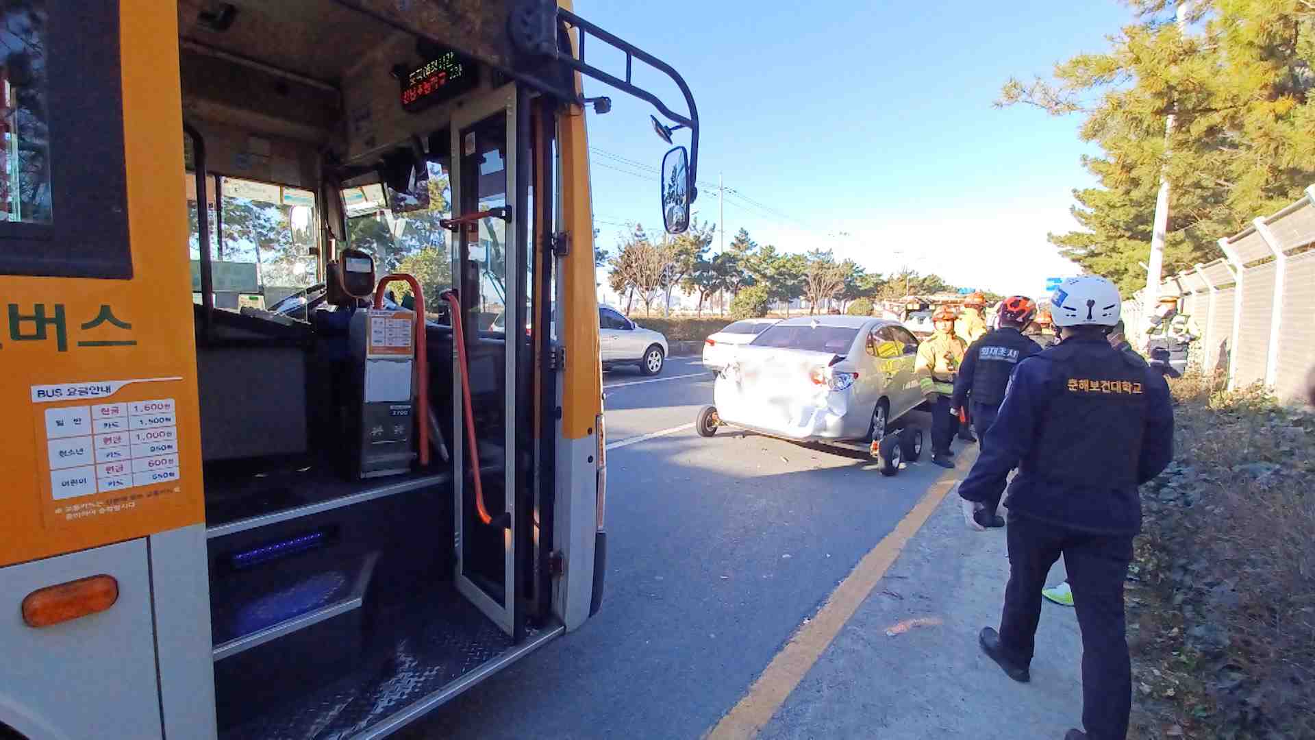 아산로에서 버스 승용차 추돌 10명 부상