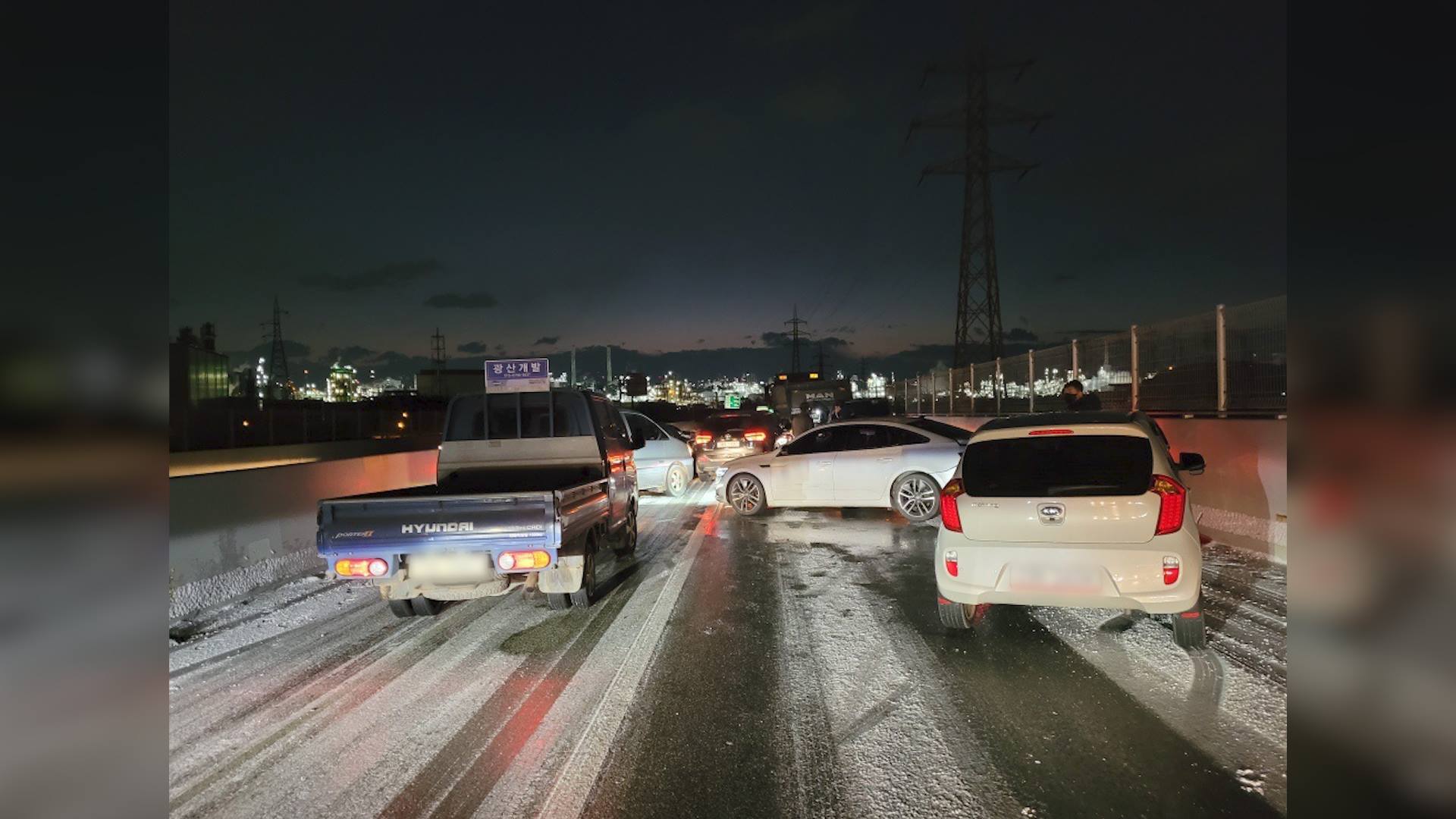 밤 사이 내린 눈으로 교통사고가 잇따랐습니다.오늘(11/18) 새벽 5시 25분쯤 남구 신두왕사거리 고가도로에서 덤프 트럭이 빙판길에서 서행하던 승용차를 들이받으면서 11중 추돌사고가 발생해 2명이 다쳤습니다.또 5분 뒤에는 울주군 문죽교차로에서 빙판길에 3중 추돌사고가 발생했습니다.
