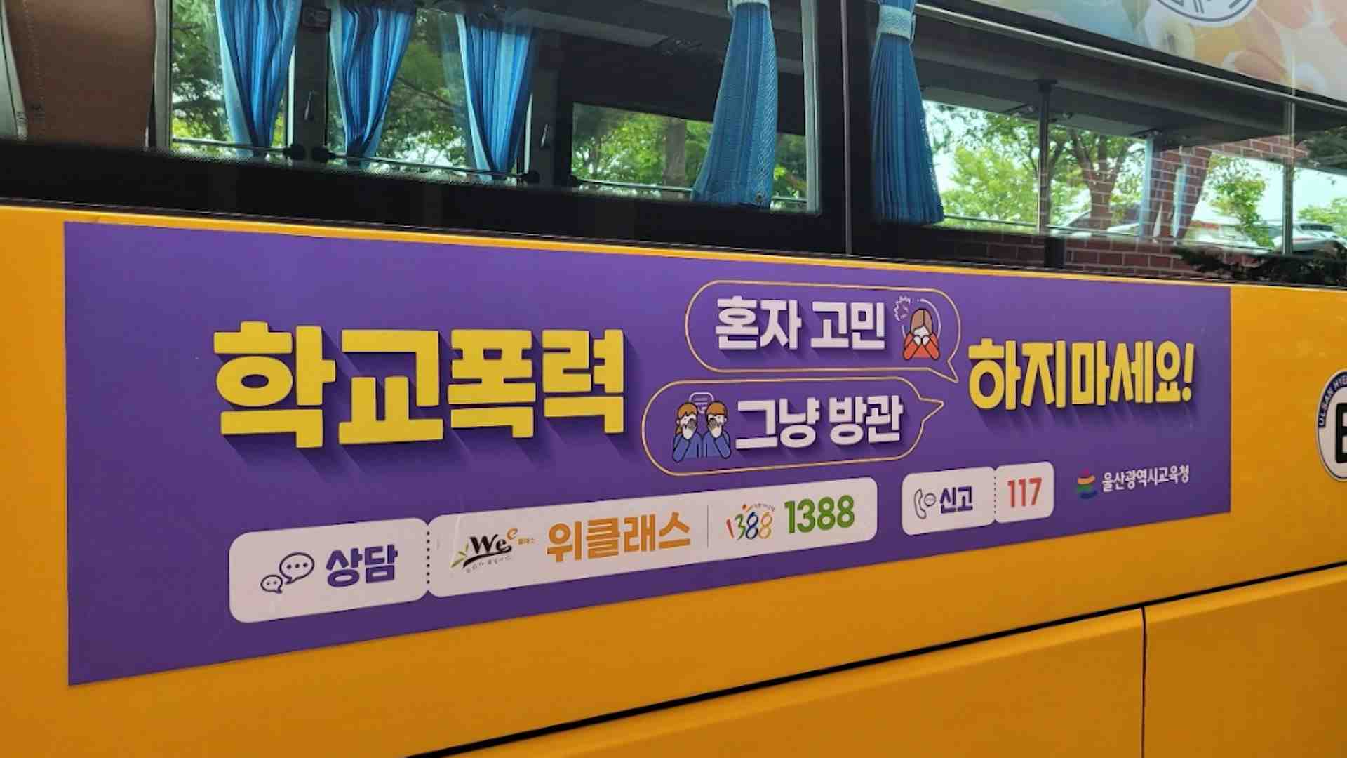 울산시교육청은 업무용 차량과 학교 통학버스를 이용해 ‘학교폭력 예방’ 홍보에 나섭니다. 울산시교육청은 업무용 차량과 각급 학교에서 운행하는 통학버스 등 31대에 홍보물을 부착해 다음 해 상반기까지 울산 전역에 홍보할 예정이라고 밝혔습니다. 지난달에는 학교폭력 예방 웹드라마를 유튜브에 공개해 현재 누적 조회 ...