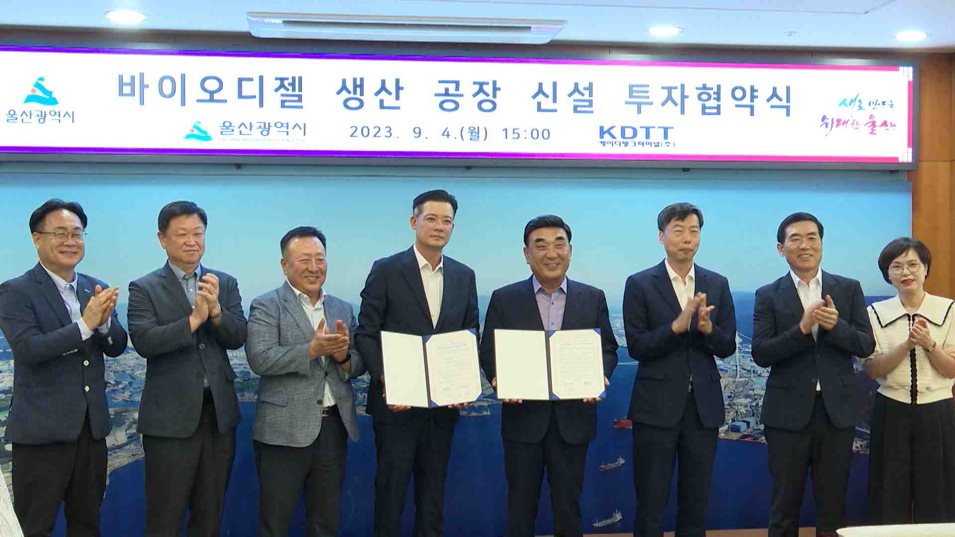케이디탱크터미널이 375억원을 들여 바이오디젤 생산공장을 울산 온산공단에 건립합니다. 케이디탱크터미널은 오늘(9/4) 울산시와 투자양해각서를 체결하고 9만톤 규모 바이오디젤 생산공장을 이달 착공에 들어가 내년 10월에 준공할 예정입니다. 바이오디젤은 식물성 기름이나 동물성 지방을 활용해 만든 친환경 연료로 석...