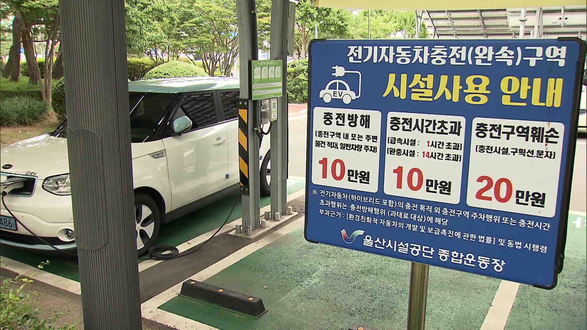 울산지역 전기차 충전 방해 과태료 부과 건수가 1년 사이 2천2백 여건에 달하는 것으로 나타났습니다. 지난해 1월 친환경 자동차 법이 개정된 후 전기차 충전을 방해할 경우 10만 원에서 20만 원 사이의 과태료가 부과됩니다. 일반 차량이 전기차 충전 구역에 주차하거나, 충전 시간이 지난 전기차가 주차하는 경우 모두 단...