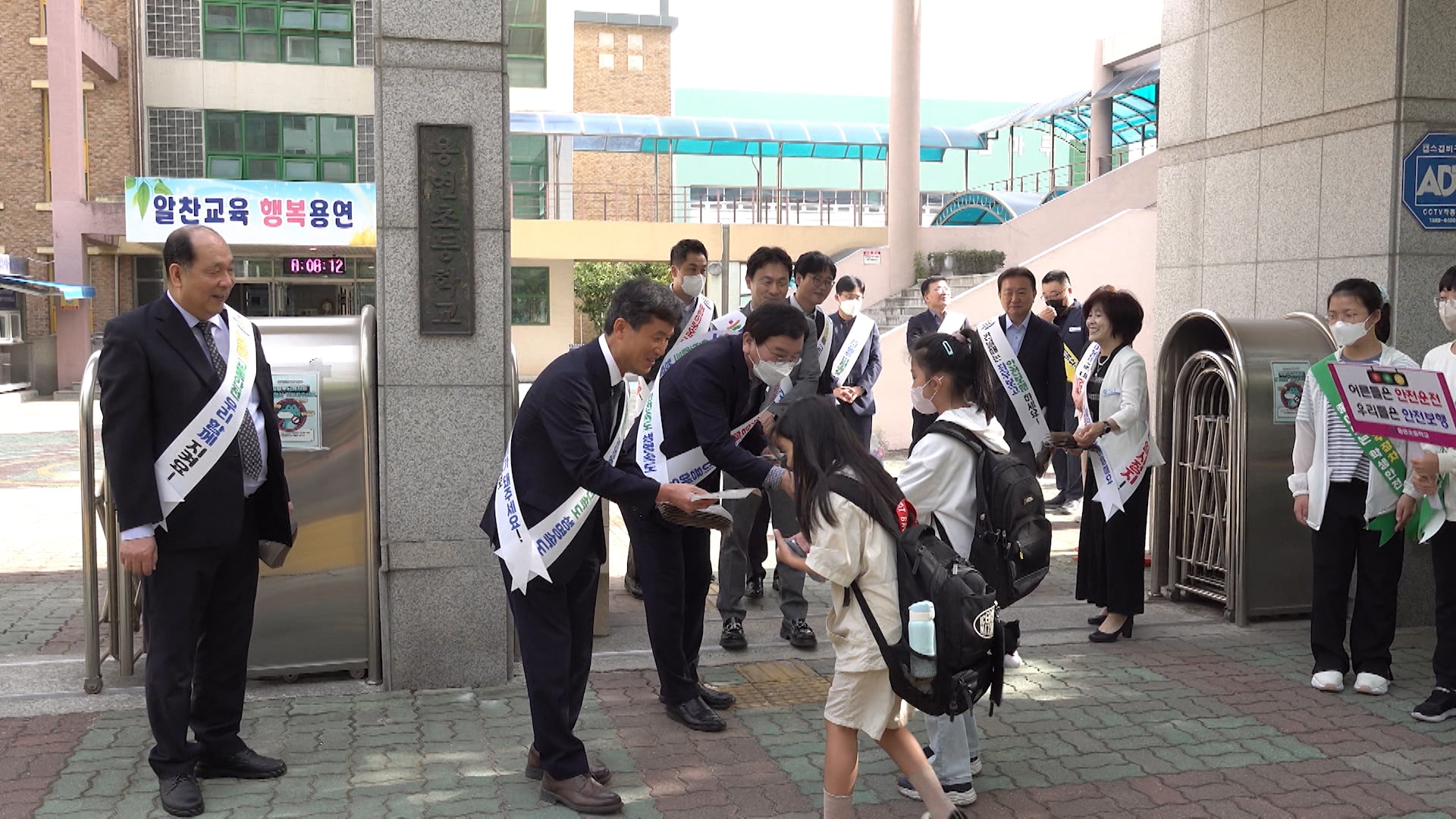 부산 초등학생 지게차 사망사고로 어린이보호구역 안전사고에 대한 경각심이 높아진 가운데 울산에서는 민관경 합동으로 학교 앞 교통사고 예방 캠페인이 벌여졌습니다. 울산시교육청과 경찰청, 녹색어머니회 등은 오늘(5/24) 남구 용연초등학교 앞에서 등하굣길 서행운전과 우회전 일시정지 등 교통법규 준수를 당부했습니...
