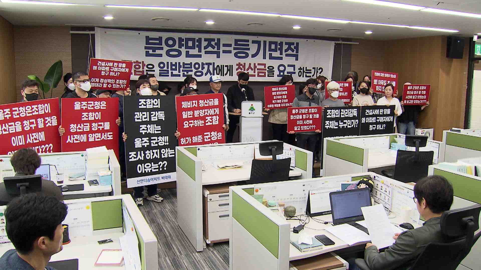 울주군 범서읍 천상지구 신한아파트 주민들은 오늘(5/9) 울주군청에서 기자회견을 갖고 조합이 입주민들에게 부과한 청산금이 부당하다며 집단 반발했습니다. 주민들은 현재 조합이 세대별 500만원 상당의 모두 20억 원에 이르는 체비지 청산금을 입주민들에게 부과한 뒤 내지 않은 세대에 통장 가압류 등 횡포를 부리고 있...
