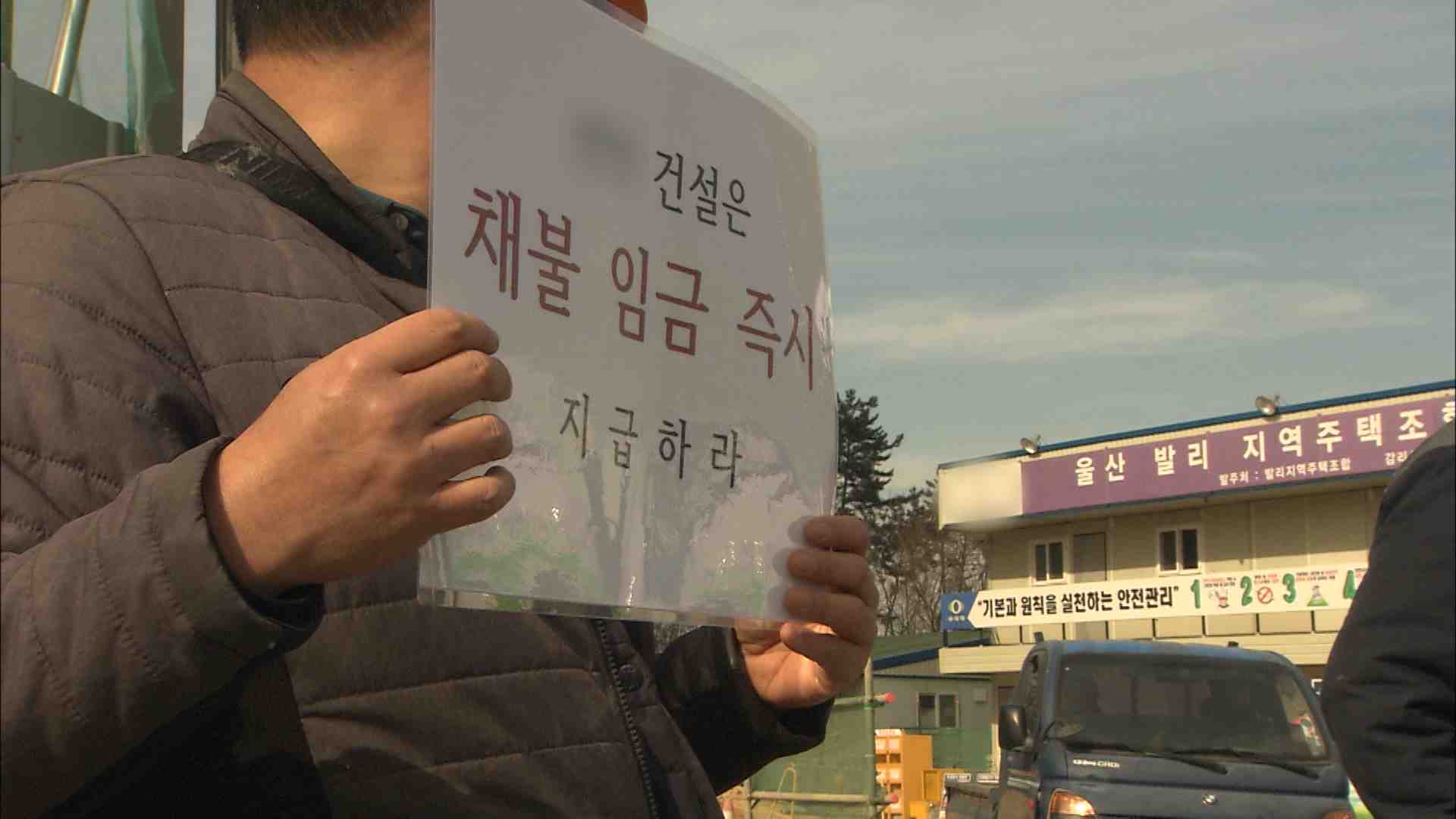 아파트 건설 노동자들이 임금을 못 받아 고공농성을 벌이고 있다는 울산 MBC 보도와 관련해 해당 주택조합과 시공사는 임금 지급 문제를 조속히 해결하겠다는 입장을 밝혔습니다. 주택조합은 건설 하청업체에 정상적으로 임금을 지급했지만 업체가 원자재 상승 등으로 공사비가 오르자 임금 지급에 차질이 생겼다고 설명했...
