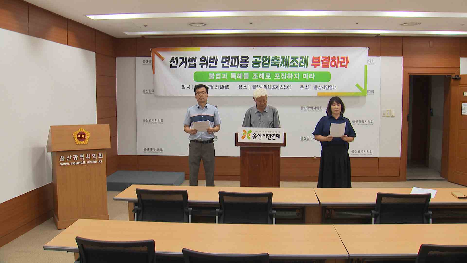 울산시민연대는 최근 상임위를 통과한 울산공업축제 관련 개정조례안의 본회의 부결을 촉구했습니다. 시민연대는 축제 경품 지원을 조례로 명시한 것은 기부행위로 볼 수 있다며, 조례안을 통과시키면 시의회도 동조세력에 불과하다고 주장했습니다. 이에 대해 울산시의회는 해당 상임위에서 충분히 검토한 사안이라고 밝혔...