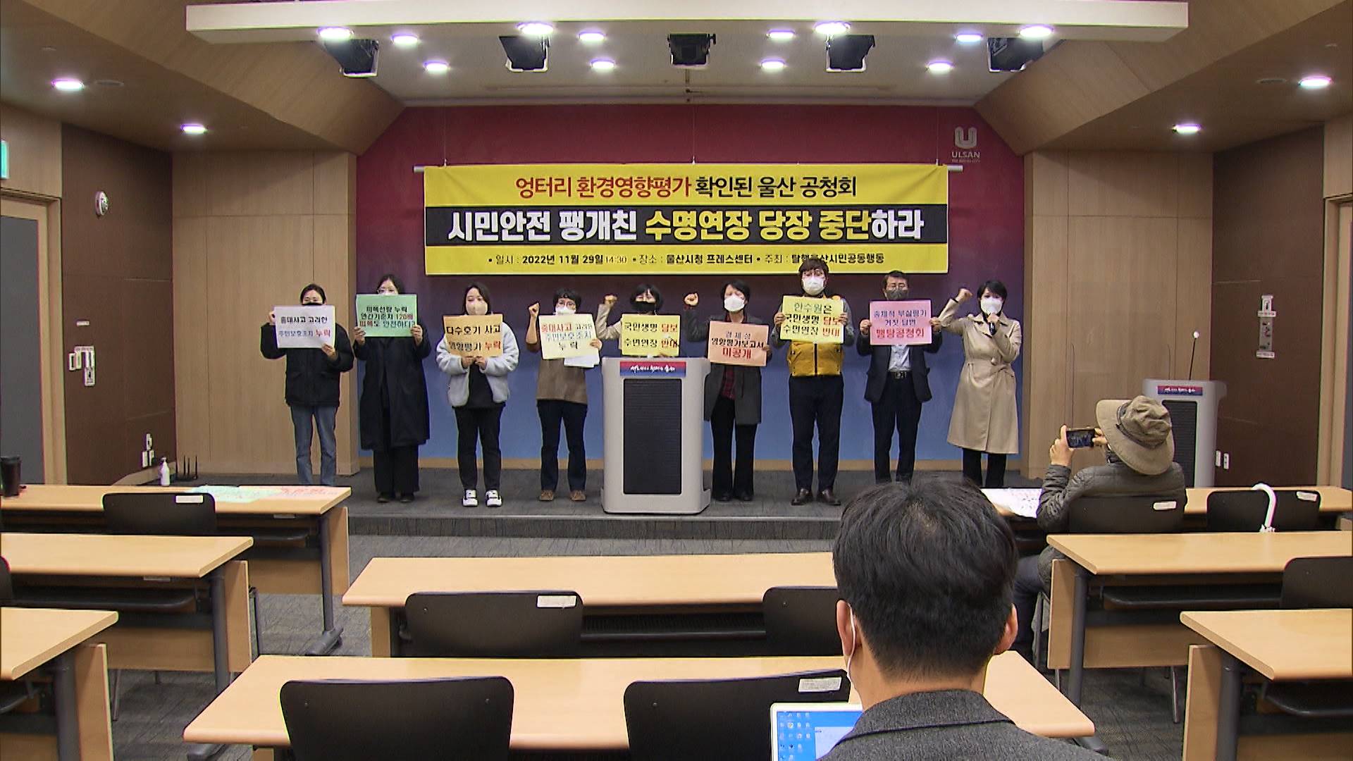 탈핵울산시민공동행동은 오늘(11/29) 울산시청 프레스센터에서 기자회견을 열고 고리2호기 수명연장 주민공청회가 졸속으로 진행됐다고 말했습니다. 이들은 어제(11/28) 열린 주민 공청회에서 한수원이 공개한 고리2호기 수명 연장을 위한 방사선 환경영향평가 초안에는 피폭 관련 주민 건강 영향과 주민보호 대책 등이 누...