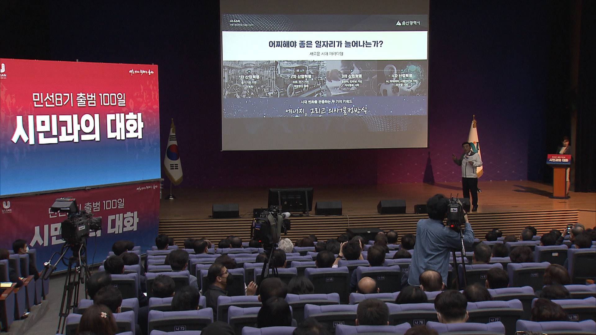 민선 8기 출범 100일을 맞은 김두겸 울산시장이 오늘(10/5) 오후 울산시청에서 시민과의 대화 행사를 열고 울산의 미래를 위해 씨앗을 뿌리겠다고 밝혔습니다. 김 시장은 일자리와 청년인구가 넘치고 아이 낳기 좋은 도시 울산을 만들겠다며, 구체적 방안으로는 산업용지 확보, 개발제한구역 해제, 수소 이동수단 산학 협력...
