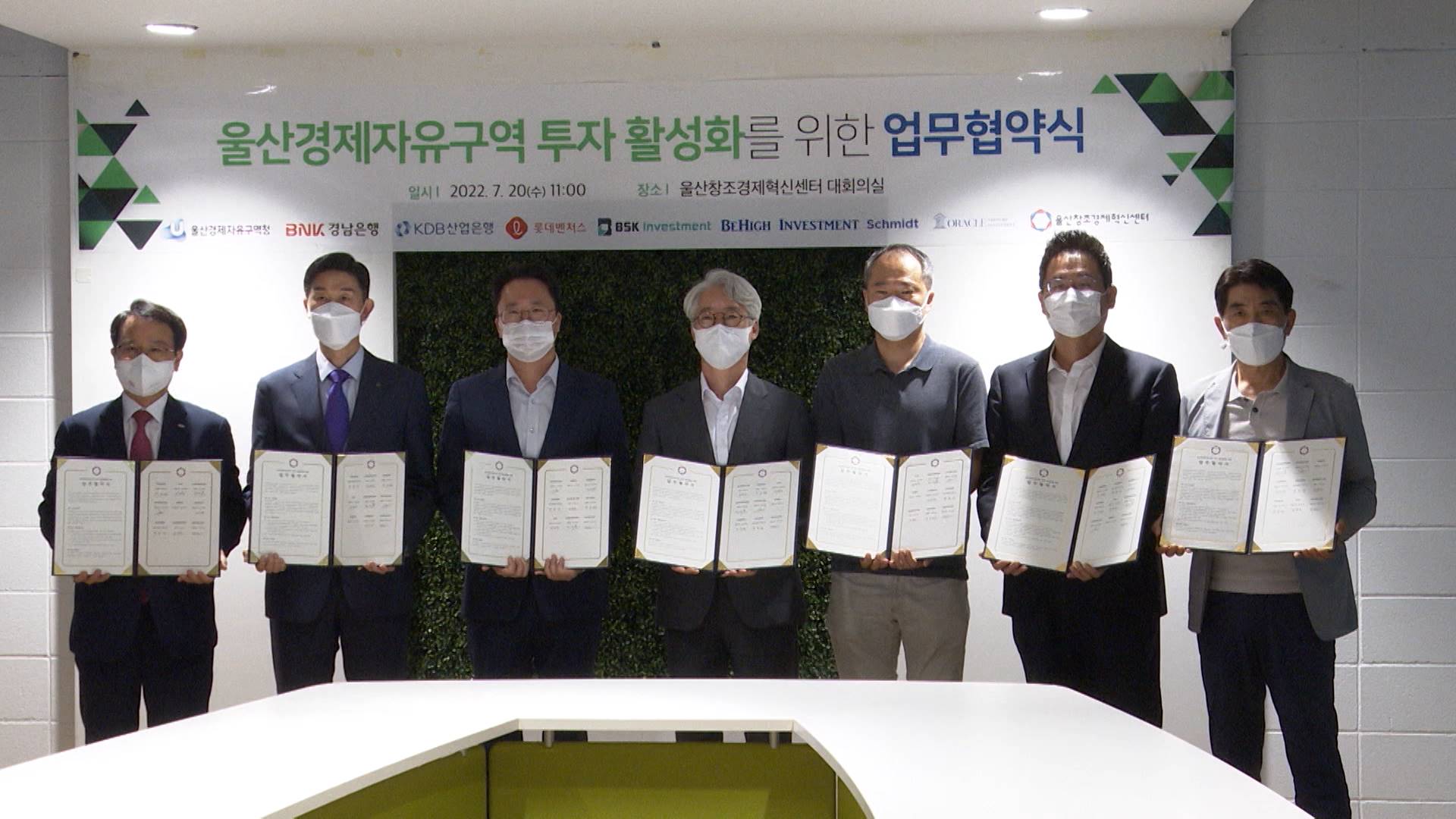 울산경제자유구역청은 오늘(7/20) 금융기관과 민간 투자사 등과 업무협약을 맺고 온라인 플랫폼 기반사업에 대한 투자 활성화 방안을 논의했습니다. 울산경자청과 BNK경남은행과 KDB산업은행, 롯데벤처스 등 9개 기관은 올해 울산경제자유구역 대중소 상생 사업에 참여해 신기술을 보유한 예비 창업자를 발굴하고 지원하는 ...