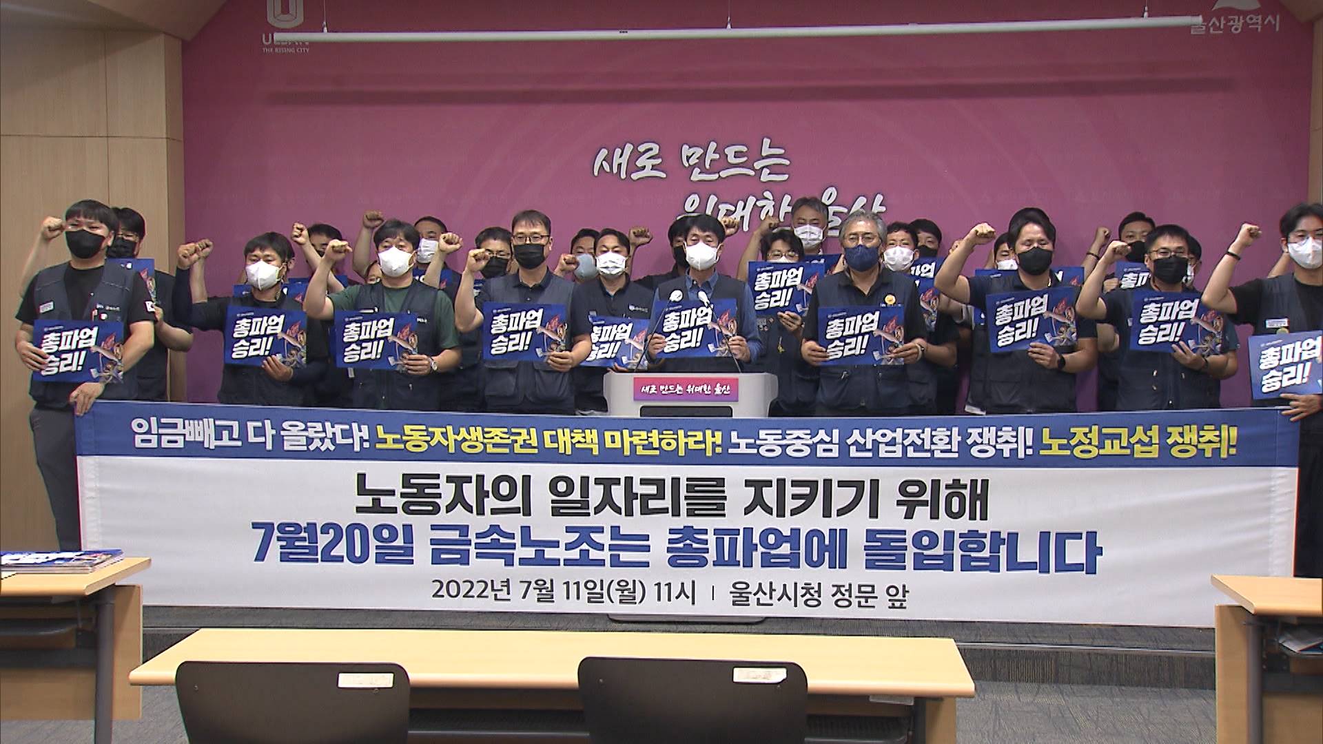 금속노조 울산지부는 오늘(7/11) 시청에서 기자회견을 열고 오는 20일 예정된 총파업은 노동자를 지키기 위한 쟁의행위라고 주장했습니다. 노조는 노동자들이 실업과 구조조정, 저임금 악순환에 시달리고 있다며 고물가 시대, 작업 환경 변화에 맞서 서민과 노동자의 생존권을 지켜낼 것이라고 강조했습니다. 금속노조 울산...