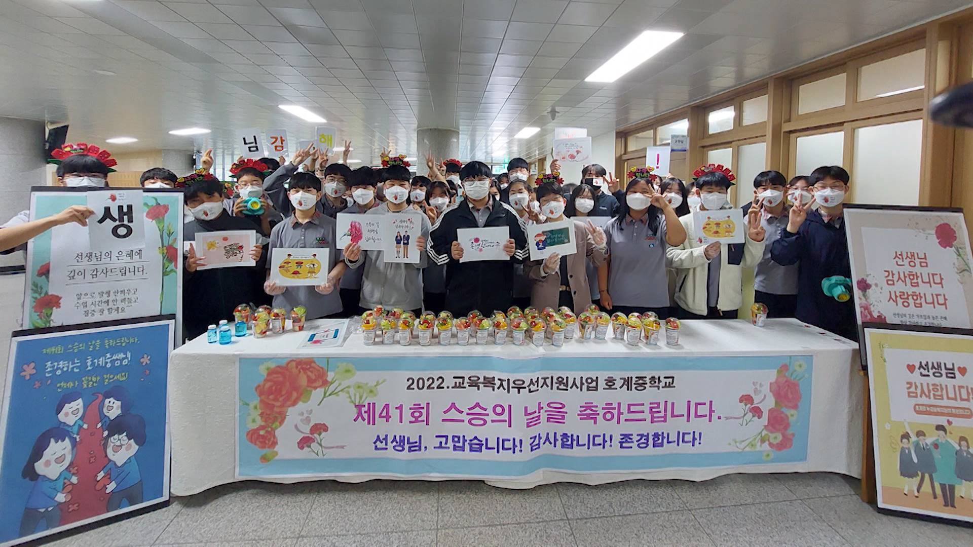 오는 15일 제41회 스승의 날을 앞두고 울산지역 각급 학교에서는 다양한 방법으로 스승의 은혜에 감사를 표현했습니다. 동평초등학교는 등교시간에 스승의 은혜를 합창하는 등굣길 음악회를 열었고 온양초등학교는 교사와 학생이 함께 리코더 연주를 했습니다. 이밖에 손편지 쓰기, 카네이션 마스크 착용하기, 컵 과일 드리...