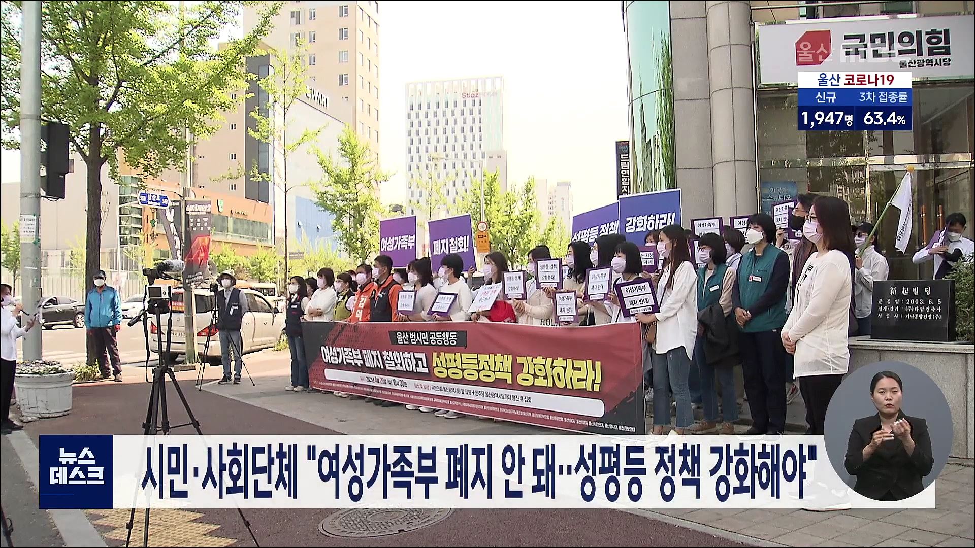 울산지역 시민사회단체와 진보정당 등 22개 단체는 오늘(4/20) 기자회견을 열고 여성가족부를 폐지해서는 안 된다고 주장했습니다. 이들은 윤석열 정부가 여성가족부를 폐지하면 여성 인권과 성평등 정책이 퇴행할 것이라며, 오히려 성평등 정책을 전담하는 독립 부처를 중심으로 성평등 달성을 위해 노력해야 한다고 밝혔...