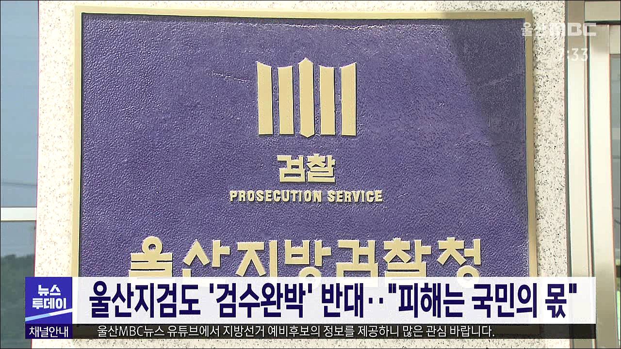 검찰 수사권 완전 박탈 논란이 커지고 있는 가운데 울산지방검찰청도 공개적으로 이른바 '검수완박' 반대 의견을 피력했습니다. 이주형 울산지검장은 오늘(4/19) 기자간담회를 열고 '검수완박'으로 인한 피해는 고스란히 국민에게 돌아갈 것이라며, 충분한 사회적 논의도 없이 단번에 검찰 수사권을 박탈하려는 시도는 중단...