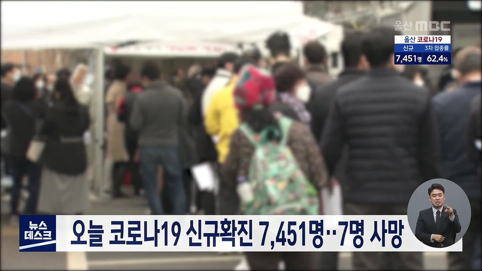 오늘 코로나19 신규확진 7,451명.. 7명 사망