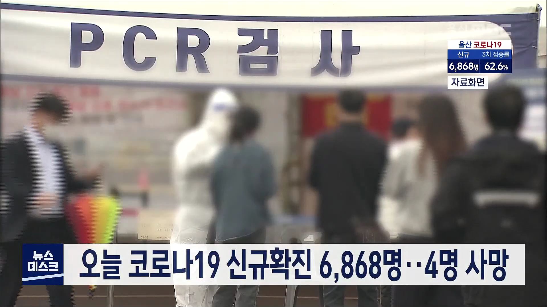 오늘 코로나19 신규확진 6,868명.. 4명 사망