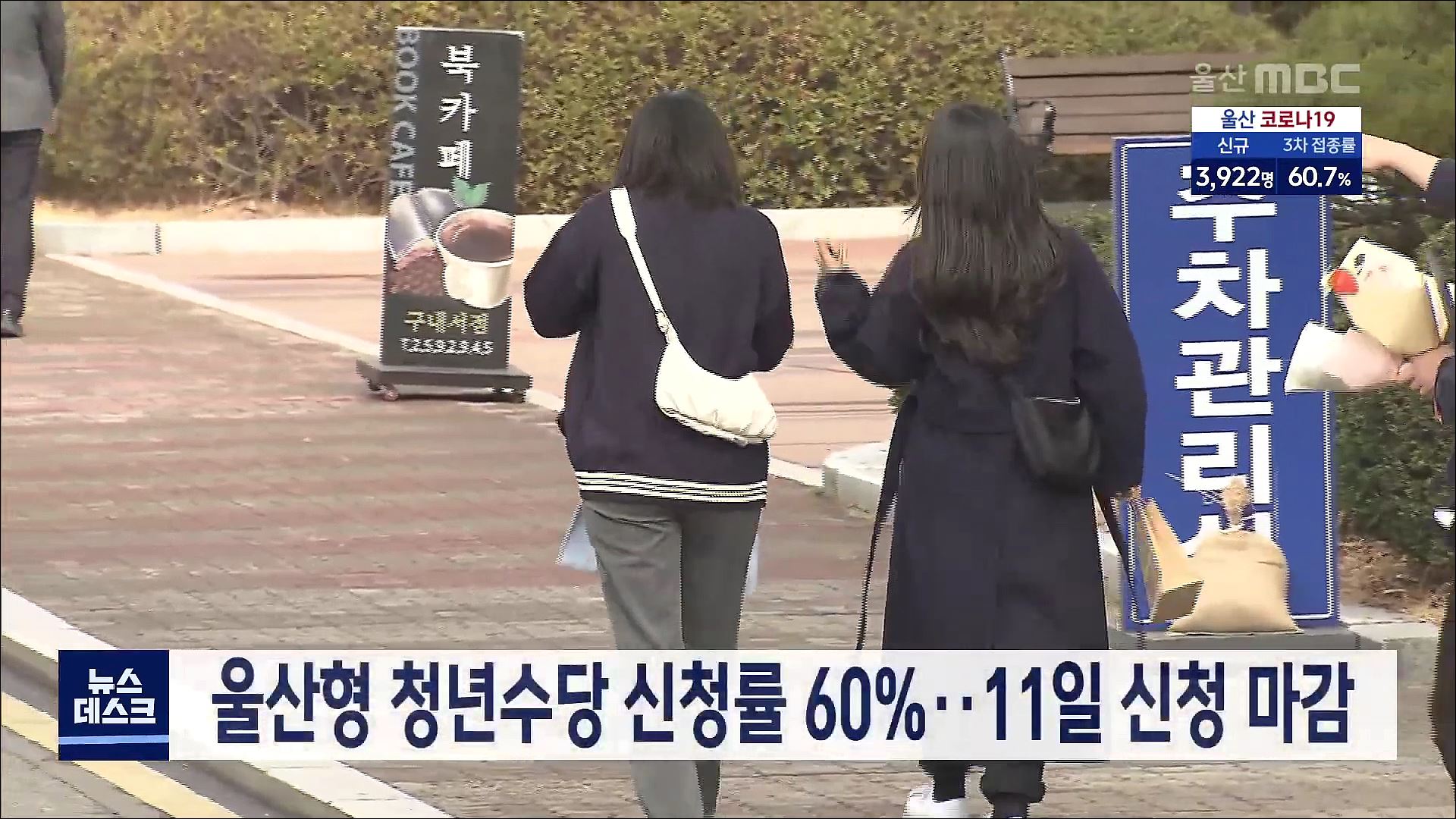 울산시가 만 24세 청년에게 연간 50만 원을 지급하는 울산형 청년수당 신청률이 60%에 그치고 있는 것으로 나타났습니다. 울산형 청년수당은 올해 만 24세가 된 1997년생 청년에게 연간 50만 원을 지역화폐로 지급하는 사업입니다. 울산시는 사업이 효과를 거둘 수 있도록 마감기한인 오는 11일까지 신청을 마쳐달라고 당부...