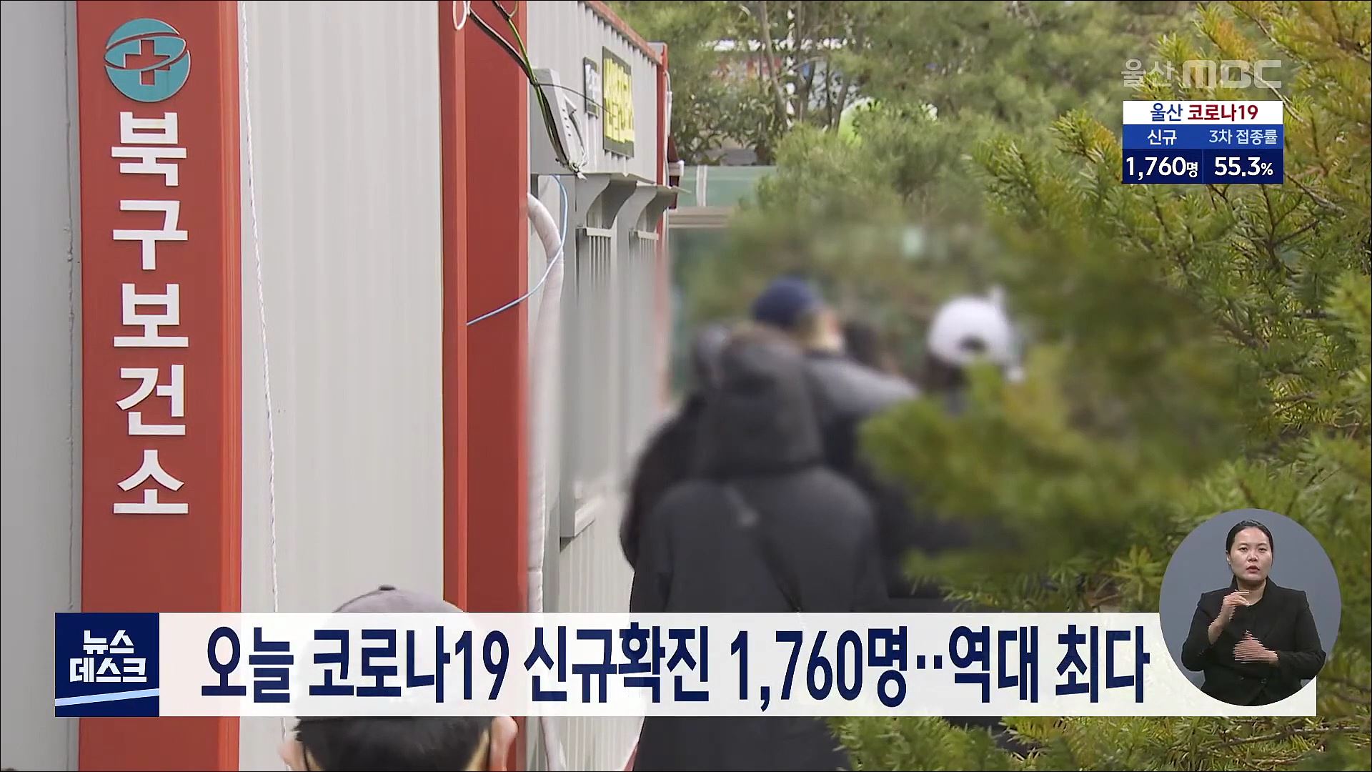 오늘(2/15) 울산에서는 코로나19 신규 확진자가 1천 760명 발생해 코로나19 유행 이후 처음으로 하루 확진자가 1천 명을 넘기며 최다를 기록했습니다. 1천 576명은 감염 경로가 확인되지 않고 있으며, 나머지 184명은 기존 확진자의 접촉자로 파악됐습니다. 이로서 울산의 코로나19 누적 확진자는 1만 9천 561명이 됐습니다...
