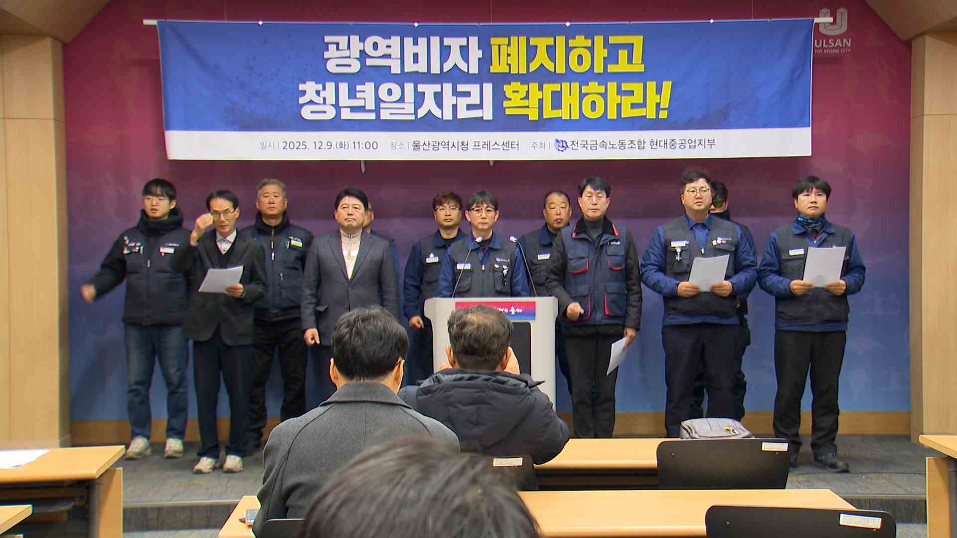울산시가 추진하는 광역형 비자 사업에 대해 HD현대중공업 노조가 청년 일자리를 늘려야 한다며 반대하고 나섰습니다.HD현대중공업 노조는 오늘(12/9) 울산시청에서 기자회견을 열고 사내 협력사 이주노동자가 2020년 3천133명에서 지난 9월 기준 1만418명으로 3배 이상 늘었지만 지난 3년간 신규 조합원은 단 9명이 늘었다...