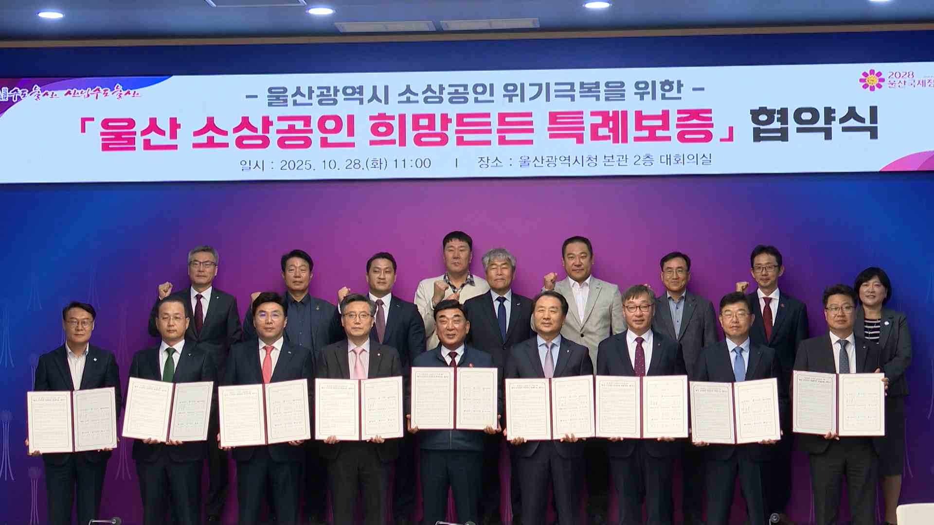울산시와 6개 시중은행이 오늘(10/28) 소상공인 위기 극복을 위한 특례보증 협약을 체결했습니다. 이번 협약은 한국은행 울산본부가 6개 은행에 낮은 이자로 자금을 공급하고, 울산신용보증재단이 연간 200억 원의 금리우대 대출을 제공하는 내용입니다. 업체당 보증 한도는 최대 6천만 원으로 지역 소상공인들의 자금난 해...