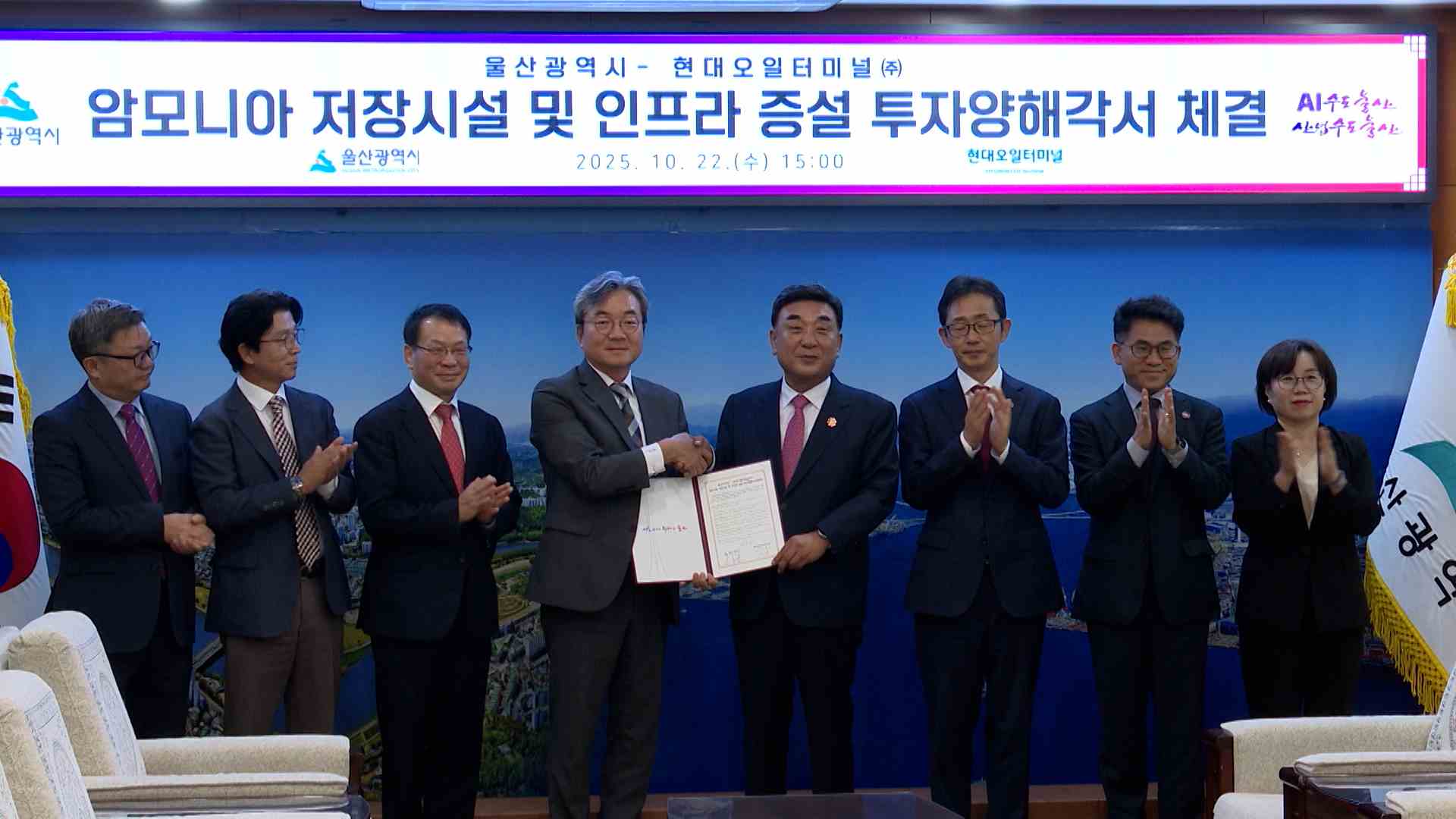 현대오일터미널이 국내 최초의 상업용 암모니아 저장시설을 운영합니다. 현대오일터미널은 울산시와 투자양해각서를 체결하고 2천340억 원을 투자해 울주군 남신항 2단계 부지에 8만㎘ 규모 암모니아 저장탱크 2기를 2028년까지 준공할 계획입니다. 울산시는 해당 시설이 완성되면 연간 125만t 규모 친환경 에너지 화물 처...