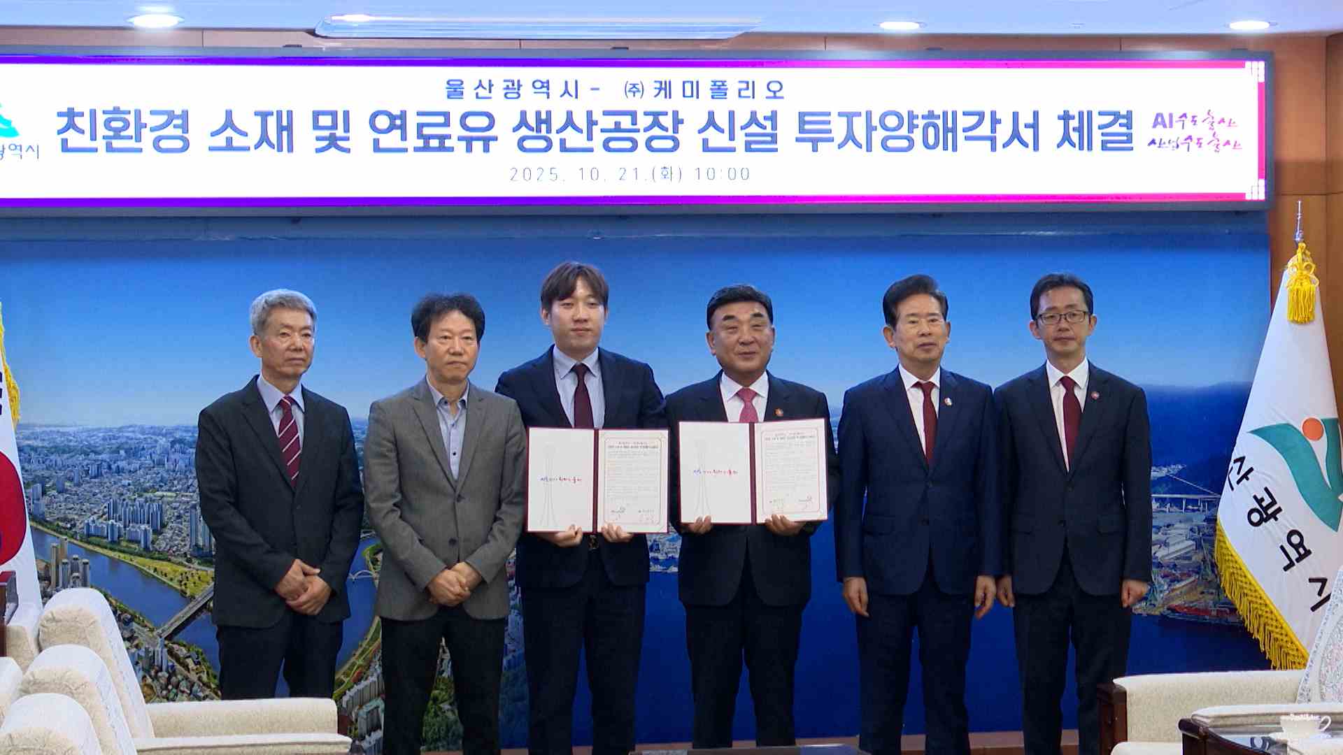 바이오 화학기업 케미폴리오는 오늘(10/21) 울산시와 투자 협약을 맺고 미포국가산단에 친환경 제품 생산 공장을 건립하기로 했습니다. 케미폴리오는 150억 원을 투입해 내년 9월까지 연간 4만 톤 이상의 연료유를 생산하는 공장을 건설하고 울산 시민을 우선 채용할 계획입니다. 울산시는 공장 인허가 등의 행정 절차를 지...