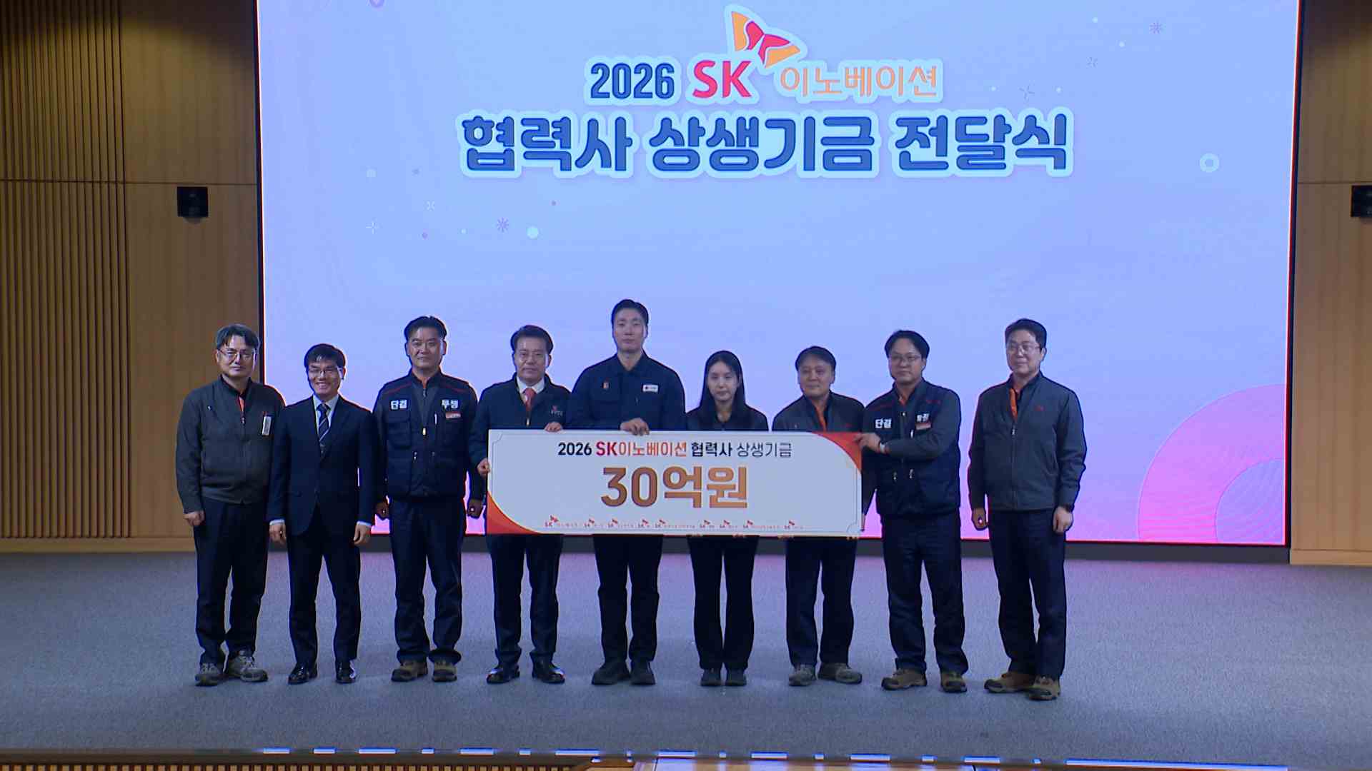 SK이노베이션이 협력사 80곳에 상생기금 30억 원을 전달했습니다.이번 상생기금은 SK이노베이션 구성원들이 기본급 1%를 기부하고 회사가 기부금과 같은 금액을 내놓아 조성됐습니다.이 기금은 설 명절을 앞두고 80개 상주 협력사 구성원 4천500여 명에게 지급될 예정입니다.