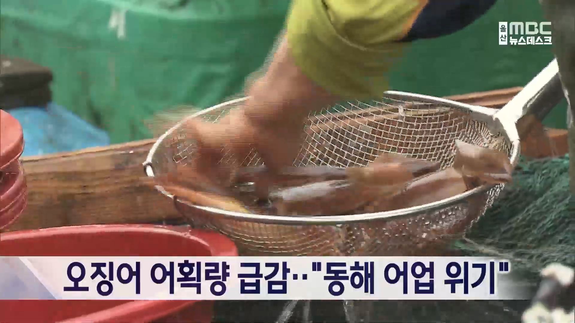 울산 연안 등 동해의 대표 수산물인 오징어 어획량이 크게 줄면서 어업 전반에 위기감이 높아지고 있습니다. 해양수산부에 따르면 지난해 10월부터 올해 9월까지 경북과 울산 연안 복합어업에서 어획된 오징어 생산량은 전년 대비 51%, 생산금액은 41% 각각 줄었습니다. 해양수산부는 오징어 등 동해의 어족 자원이 크게 줄...