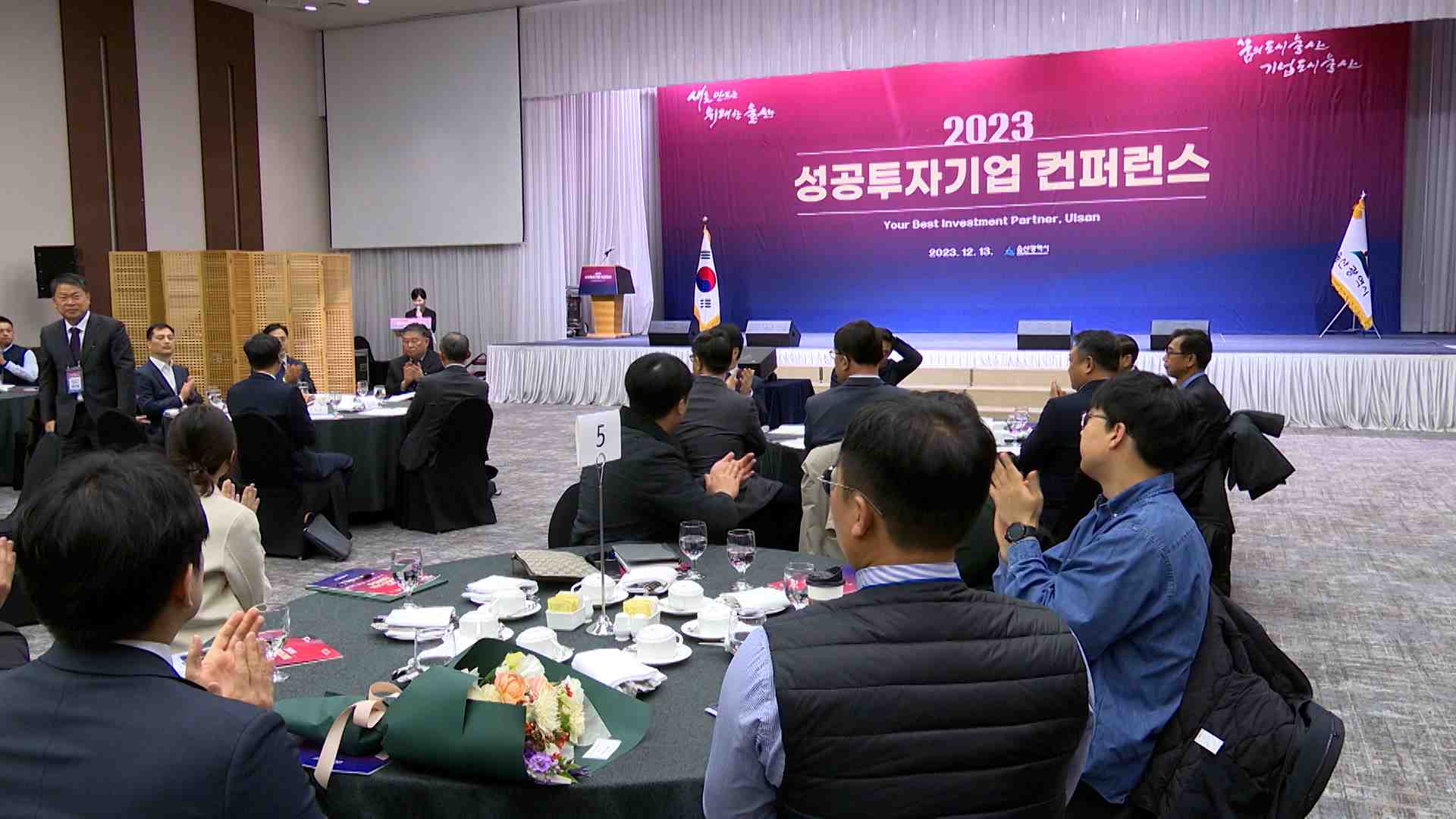 올해 성공투자기업 학술회의가 오늘(12/13) 오전 울산 롯데호텔에서 열렸습니다. 국내‧외 투자기업 임직원 등 100여 명이 참석한 이번 회의는 울산에 적극적으로 투자한 국내‧외 기업들과 울산 지역 기술 강소기업과 관련 기관의 네트워크 구축을 위해 마련됐습니다. 이날 행사에서 국내외 기업 투자유치 유공자로 에쓰-오...