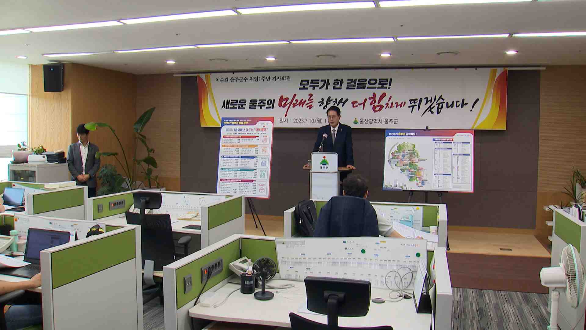 이순걸 울주군수는 오늘(7/10)울주군청 프레스센터에서 취임 1주년 기자회견을 열고 101개 공약사업 가운데 해뜨미 바로-콜센터 운영과 이장 활동비 지원 등 16개 사업을 완료했다고 밝혔습니다. 또 영남알프스 케이블카와 남부권 해양관광 레저단지 조성 등 핵심사업들도 순조롭게 추진되고 있다고 덧붙였습니다. 하지만 ...