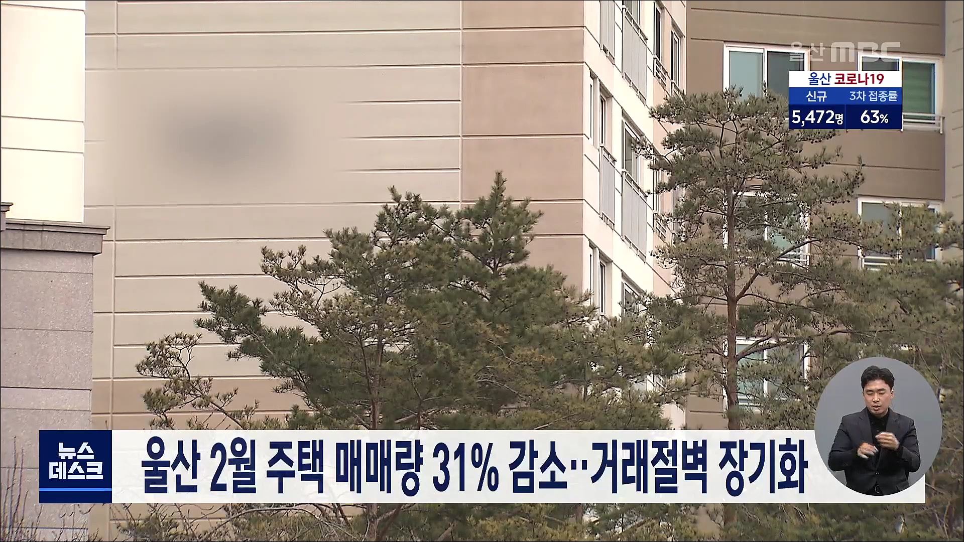 강력한 대출규제와 금리인상 여파로 울산지역 주택 거래절벽 현상이 길어지고 있습니다. 국토교통부에 따르면 2월 울산의 주택 매매량은 1천 59건으로 전년 동월 대비 31.3% 감소했습니다. 구·군별로는 울주군이 218건으로 전년 대비 43.4% 감소해 가장 큰 감소 폭을 보였습니다.