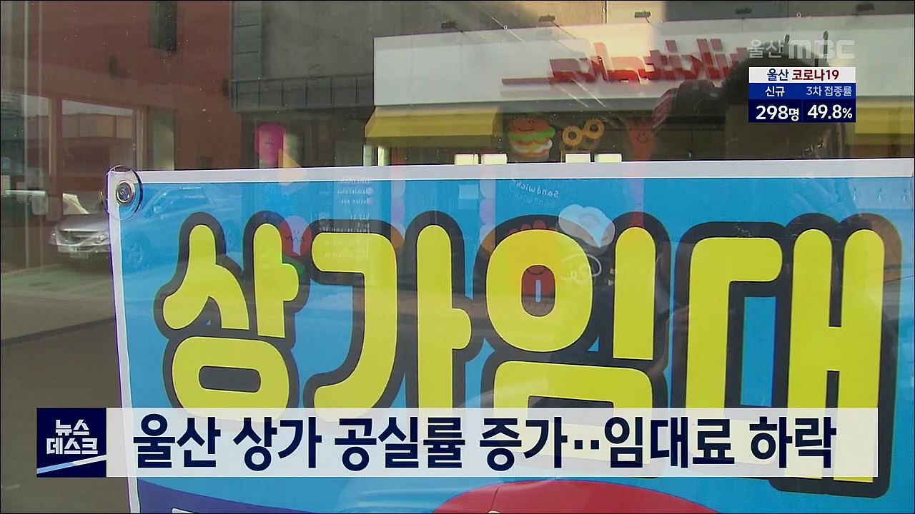 코로나 사태 장기화로 지난해 울산지역 상가 공실률이 늘면서 임대수익이 줄어든 것으로 나타났습니다. 한국부동산원이 발표한 상업용 부동산 임대동향에 따르면 지난해 울산지역 상가 평균 공실률은 오피스 18.5%, 중대형 상가 21.4%로 집계됐습니다. 지난해 연초 대비 중대형 상가는 공실률이 1.1%p 높아져 전국 최고 상...