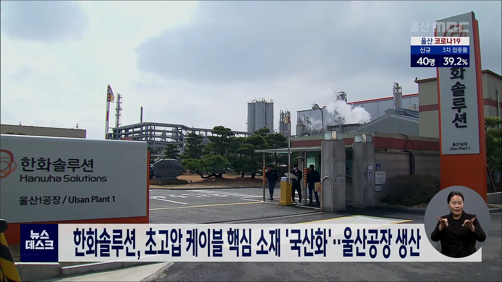 한화솔루션이 전량 수입에 의존하던 초고압 케이블의 핵심 소재를 국산화시켜 올해부터 울산공장에서 생산합니다. 한화그룹은 지난 2017년부터 초고압 케이블의 송전 효율을 높이는 연구에 착수해 연간 4만 톤 규모의 상업 생산 설비를 갖췄다고 밝혔습니다. 해상 풍력발전소와 육지 변전소 등을 연결하는 초고압 케이블은 ...