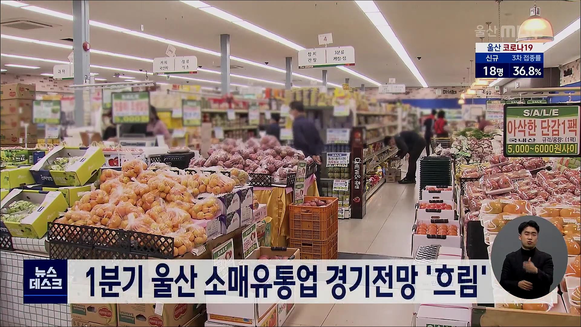 울산지역 소비심리가 코로나19 재확산 영향으로 다시 나빠진 것으로 나타났습니다. 울산상공회의소가 소매유통업체 53곳을 대상으로 실시한 1분기 소매유통업 경기전망지수 조사 결과, 올해 1분기 전망치는 전분기 대비 5p 하락한 99로, 3분기 만에 다시 기준치 100이하로 떨어졌습니다. 업종별로는 백화점이 133으로 기준...