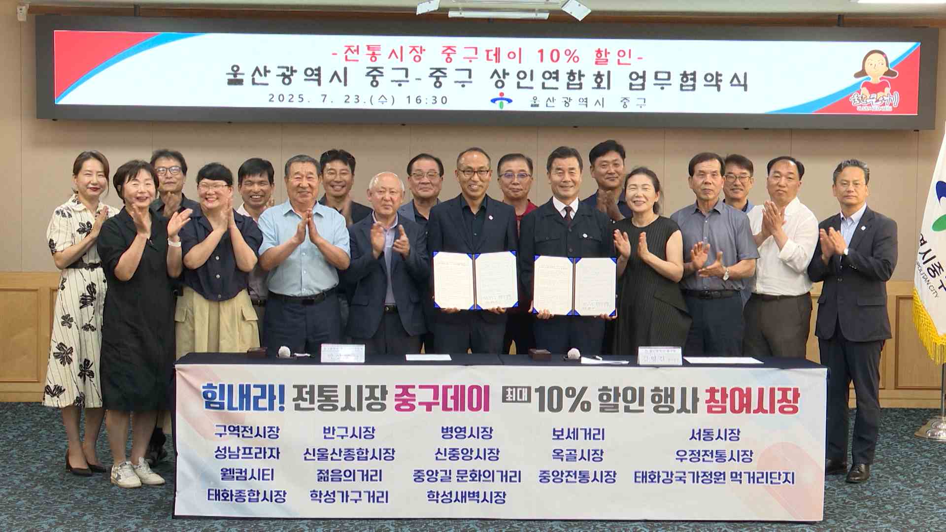 울산 중구가 오는 25일(내일) 하루 동안 전통시장 10% 할인 행사를 엽니다. 지역 소비 촉진을 위한 이번 행사에는 구역전시장과 반구시장, 성남프라자 등 지역 내 전통시장과 상점가 18곳이 참여합니다. 중구청은 울산페이를 사용하면 15% 적립금과 행사 할인까지 최대 25%의 할인을 받을 수 있다고 설명했습니다.