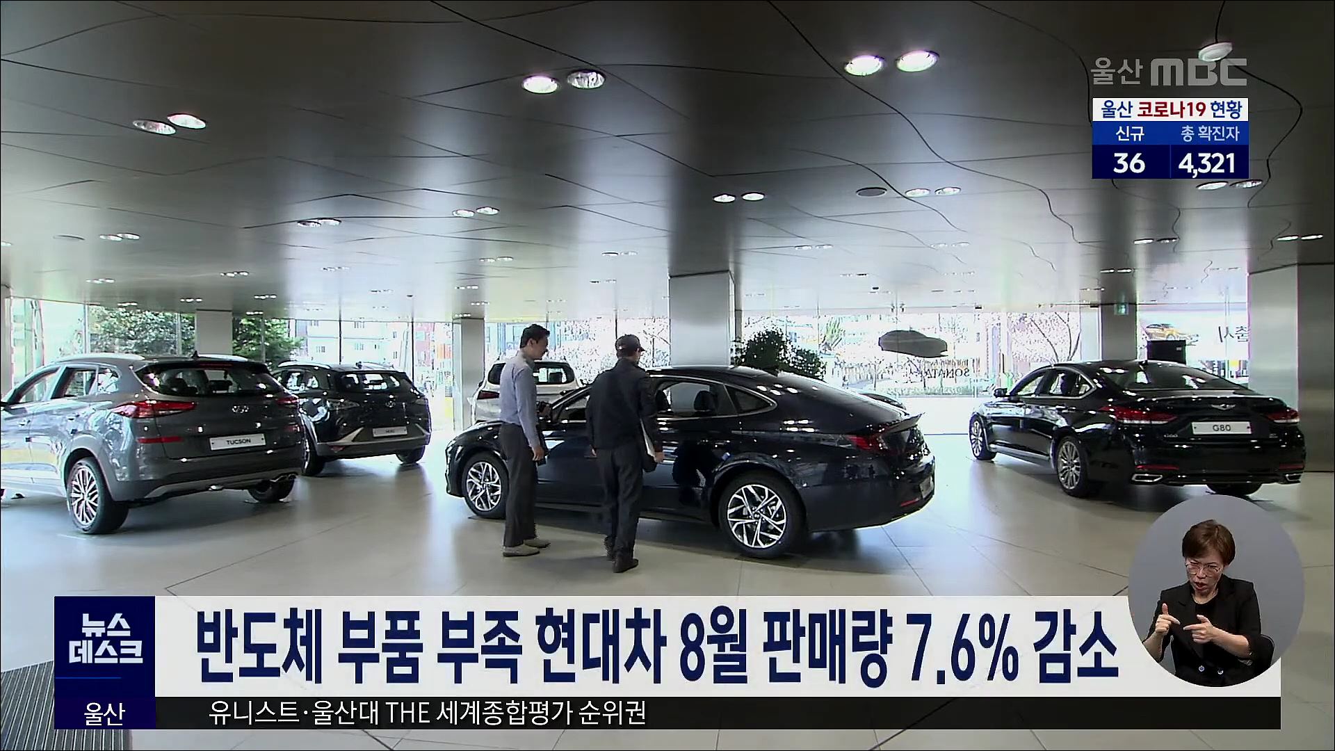 반도체 부품 부족으로 지난달 현대차의 판매량이 크게 줄었습니다. 현대자동차는 지난달 국내 5만 1천대, 해외 24만 3천 대를 합쳐 모두 29만 4천 여대를 판매했다고 밝혔습니다. 이는 전년대비 7.6% 감소한 수치로, 반도체 부품 부족 사태로 해외 생산량이 줄고 코로나19 재확산 우려가 확산됐기 때문으로 현대차는 분석했...