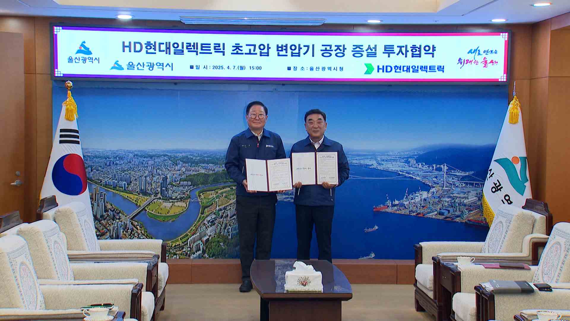 울산시와 HD현대일렉트릭이 오늘(4/7) 변압기 공장 증설 투자 협약을 맺고 울산시민을 최우선 고용하기로 합의했습니다. 현대일렉트릭은 2,118억 원을 투입해 동구 울산·미포 국가산단에 초고압 변압기 공장을 증설할 계획으로, 사업이 완료되면 130명 이상의 일자리가 창출될 것으로 기대됩니다. 울산시는 공장 증설에 필...