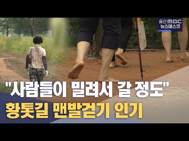 [앵커] '맨발걷기'가 건강에 좋다는 입소문이 나면서 황톳길 산책로가 유명세를 치르고 있습니다. 각 지자체마다 앞다퉈 황톳길을 새롭게 만들거나 기존 산책로 확장에 나서고 있습니다. 이다은 기자입니다. [리포트]울산 중구 황방산. 길게 늘어선 황톳길을 따라 많은 시민들이 맨발로 걷고 있습니다. '맨발걷기'로 건강을...
