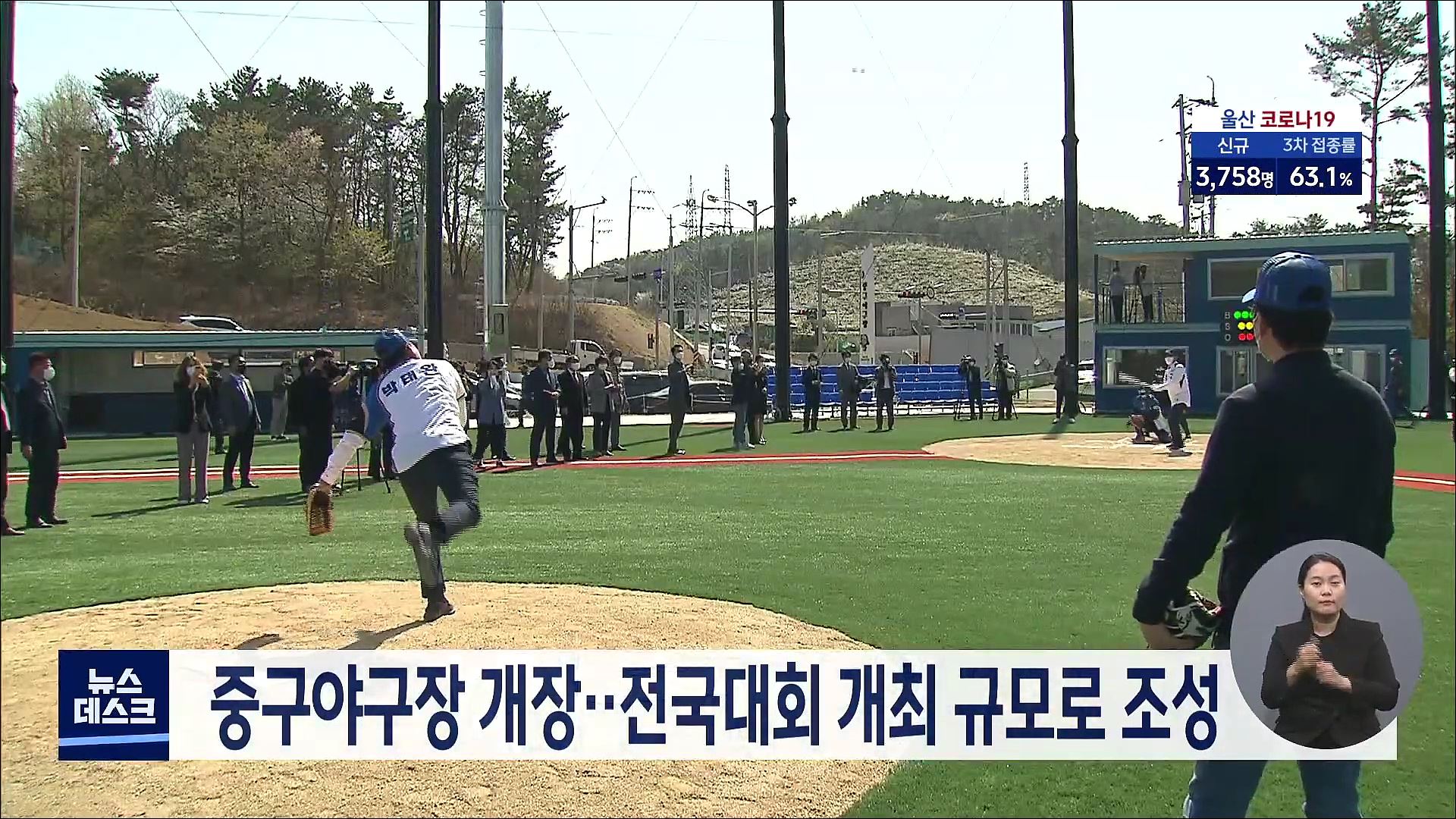 중구 성안동 중구야구장이 오늘(4/8) 준공식을 마치고 정식 개장했습니다. 중구야구장은 2만 281㎡ 규모로 인조 잔디구장과 선수 대기실 등 전국 대회를 열 수 있는 공인 규격을 갖췄습니다. 이 야구장은 올해 울산에서 열리는 전국체육대회의 야구 경기장으로도 사용될 예정이며, 사회인야구 동호인 등 시민들에게도 개방...