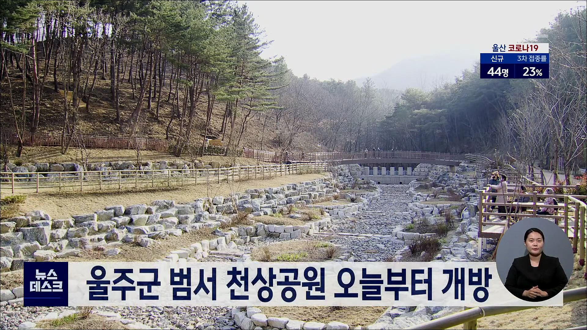 울주군 범서읍 천상공원이 오늘부터(12/23) 주민들에게 개방됐습니다. 울주군은 천상 저류지를 활용해 수변 산책로와 정원 개념의 쉼터, 숲속 놀이터 등 특색 있는 도심 속 공원을 조성했다고 설명했습니다. 앞서 올해 상반기에는 천상공원 아래 146면의 지하 주차장이 조성됐습니다.