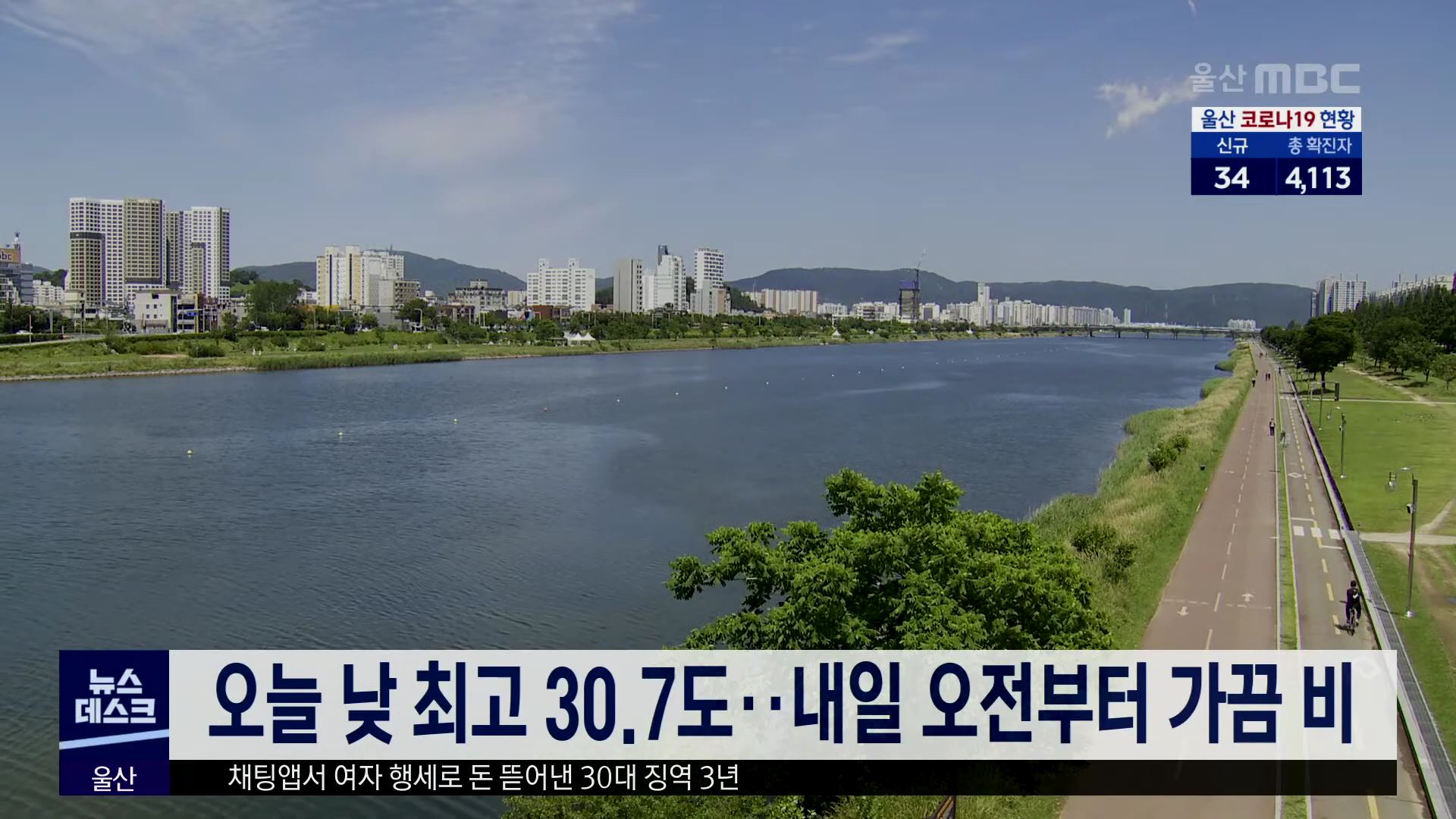 주말인 오늘(8/28) 울산지방은 구름 많은 날씨 속에 낮 최고 기온이 30.7도를 기록하며 평년을 웃도는 기온 분포를 보였습니다. 내일은 대체로 흐리겠고 아침 최저 22도, 낮 최고 30도의 오늘과 비슷한 기온 분포가 예상됩니다. 내일 오전부터는 흐리다 곳에 따라 가끔 비가 내리겠으며 이 비는 모레 저녁까지 내리다 그치...