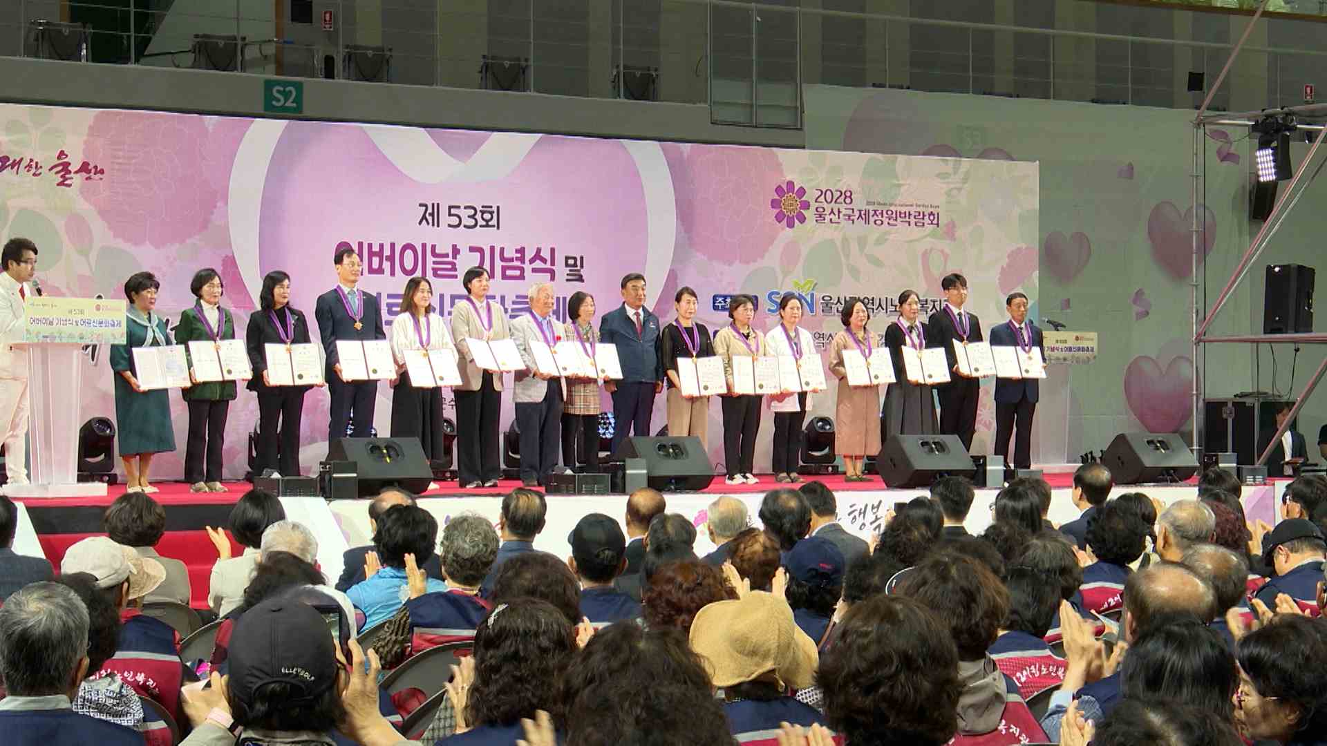 제53회 어버이날 기념행사가 오늘(5/8) 문수체육관에서 열렸습니다. 울산시 노인복지관이 주최한 이번 행사는 효행 실천 유공자 표창장 수여식에 이어 초대가수 공연과 어르신 문화 축제 등의 순으로 진행됐습니다. 5개 구·군 복지관 등 100여개 단체들도 어버이날을 전후해 기념행사를 열고 경로 효친의 미덕을 되새겼습니...