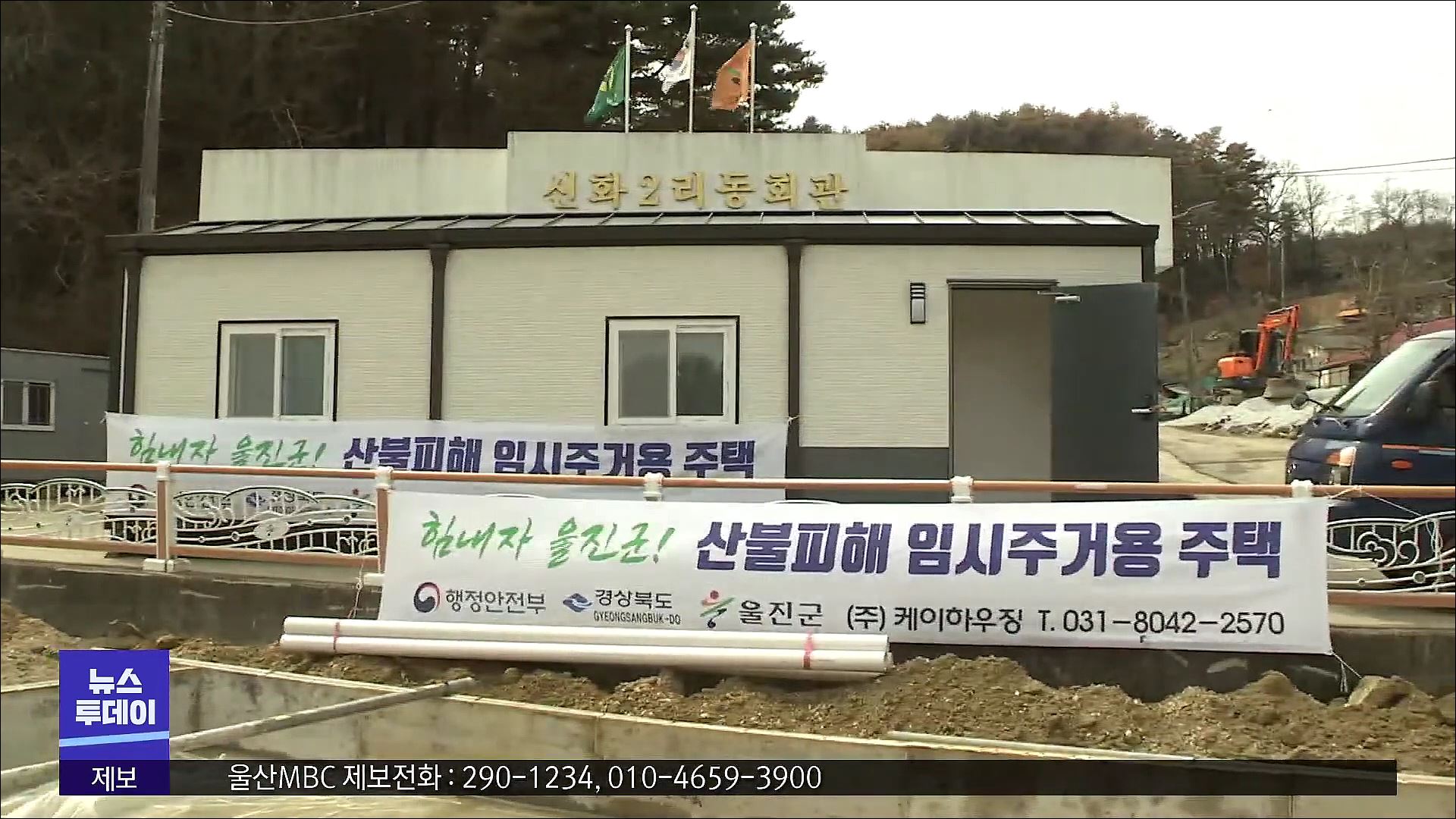 ◀ANC▶ 울진 삼척 산불로 집을 잃은 이재민을 임시 조립 주택을 공급할 계획인데, 마을 진입로가 좁거나 적절한 부지를 찾기 힘들어 이마저도 힘든게 현실인데요, 농번기를 앞두고 먼거리의 대피소를 오가야 되는 이재민들은 걱정이 커지고 있습니다. 배현정 기자가 취재했습니다. ◀END▶ ◀VCR▶ 울진 산불로 불탄 ...