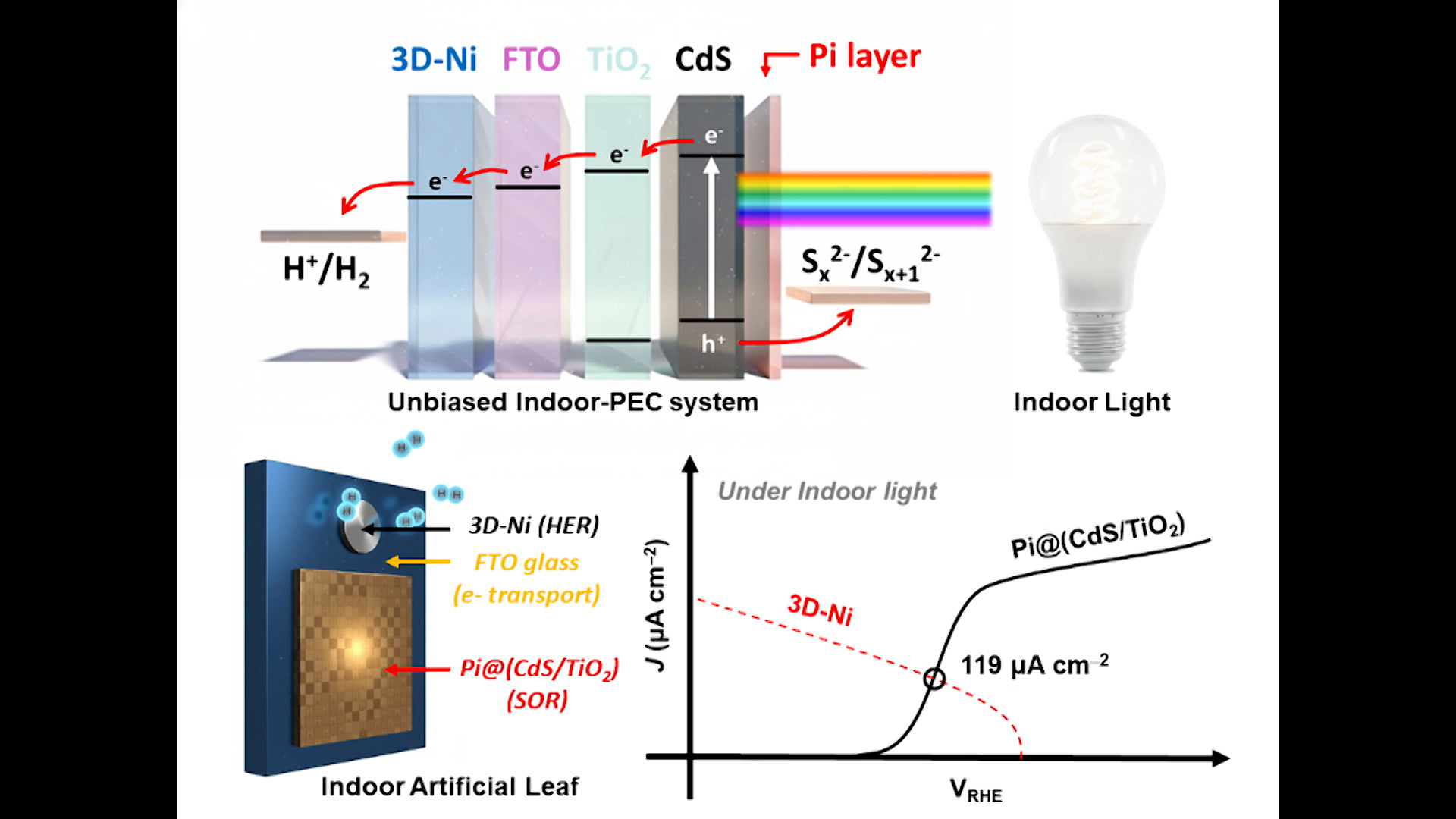 실내조명 빛을 활용해 수소를 만드는 인공 나뭇잎이 개발됐습니다.UNIST는 에너지화학공학과 장지현 교수팀이 실내조명 환경에 적합한 광전극과 3차원 니켈 수소 촉매를 결합해 외부 전압 없이도 작동하는 인공 나뭇잎을 개발했다고 밝혔습니다.연구팀은 이번 연구로 그동안 실내에서 버려졌던 빛을 수소 생산의 에너지원으...