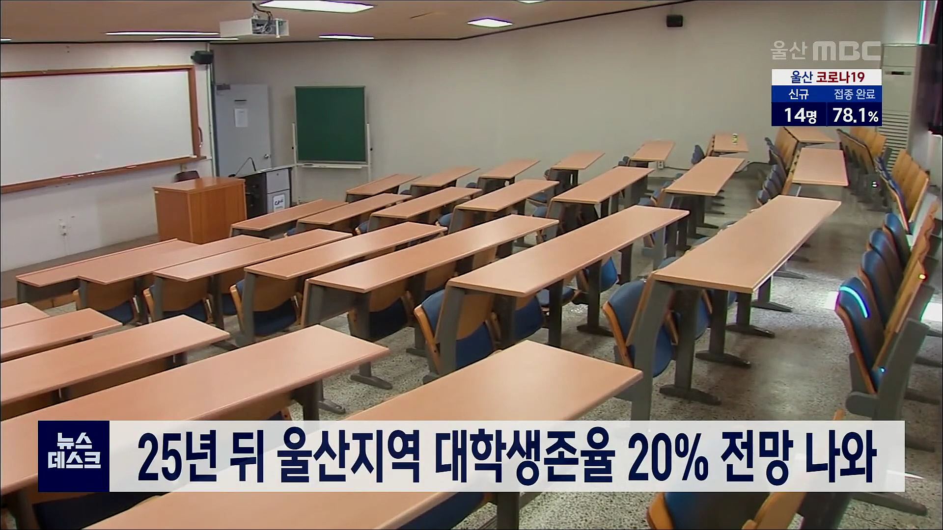 25년 뒤에는 190개에 불과하고, 울산은 대학생존율이