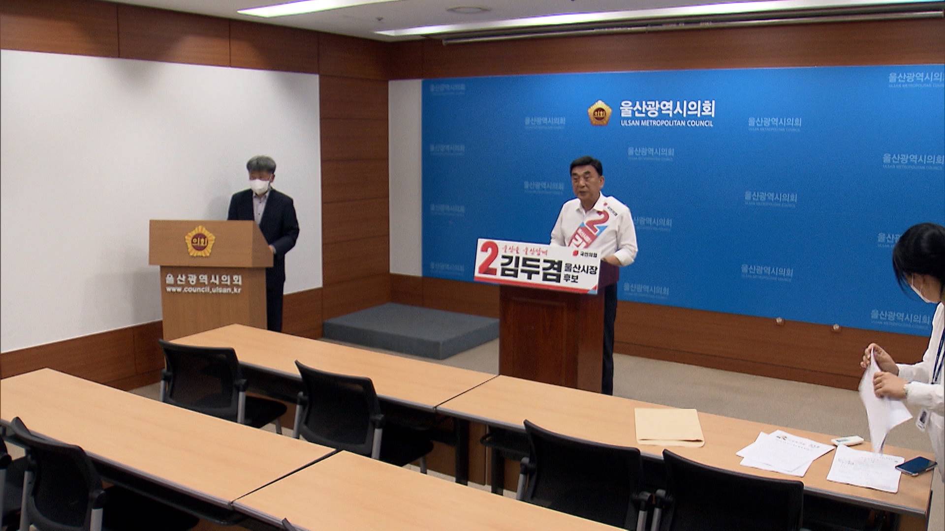 김두겸 국민의힘 울산시장 후보는 오늘(5/26) 기자회견에서 자신을 반노동 반인권 후보라고 비난하는 송철호 후보에게 법적 책임을 묻겠다고 밝혔습니다.