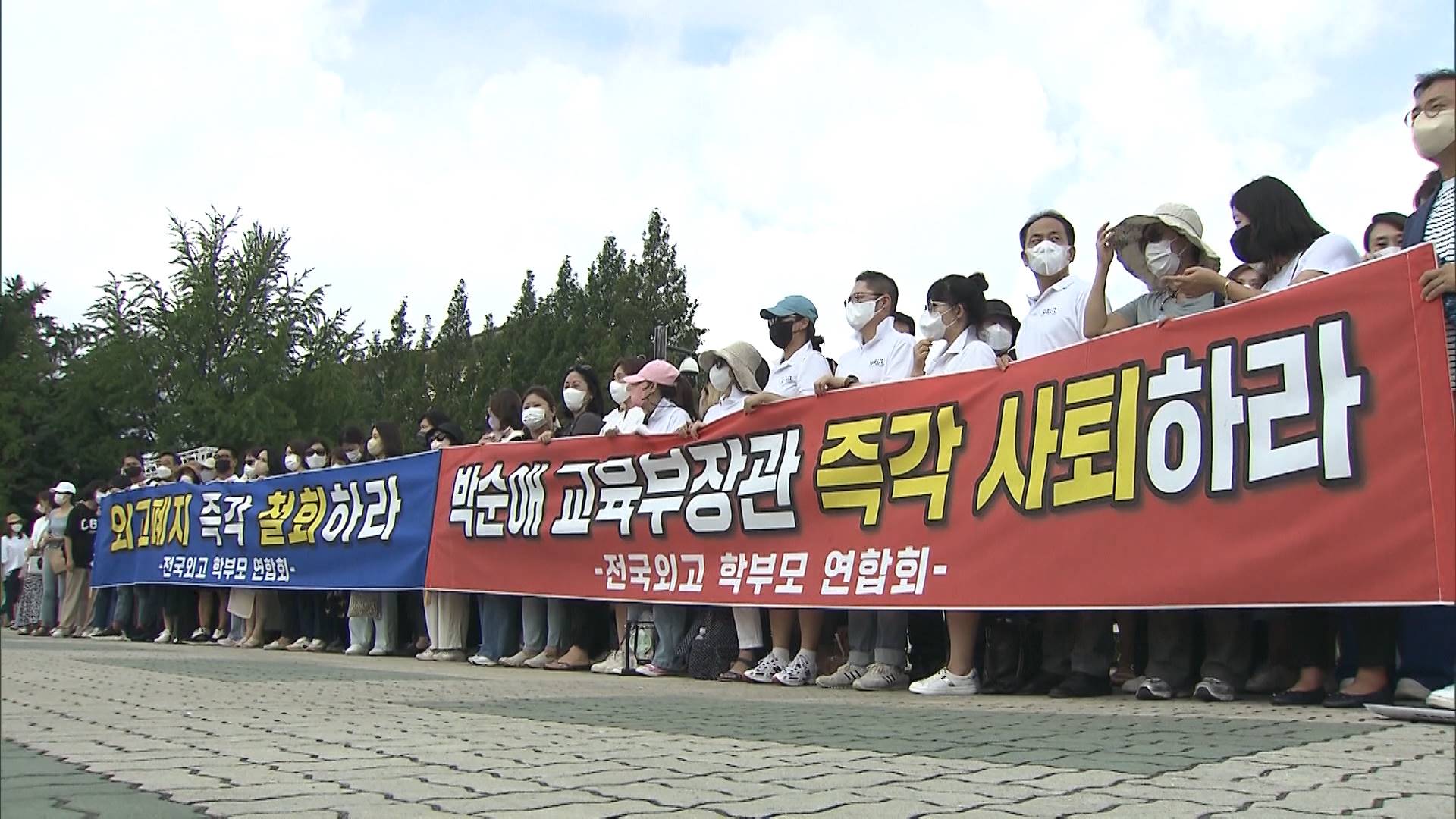 전국외고학부모연합회는 오늘(8/5) 국회 앞에서 기자회견을 열고 자사고와 국제고는 존치하고 외고만 폐지하는 것을 납득할 수 없다며 박순애 교육부 장관의 사퇴를 촉구했습니다.