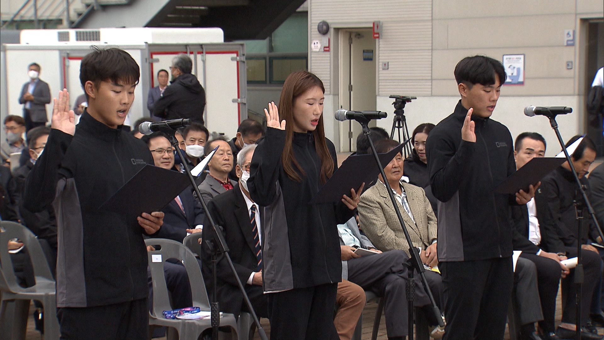 우리 선수 일동은 대회 제반규정을 준수하고 정정당당히 경기에 임하여 성적 거양에 최선을 다할 것을 굳게 다짐하면서 이에 선서합니다.