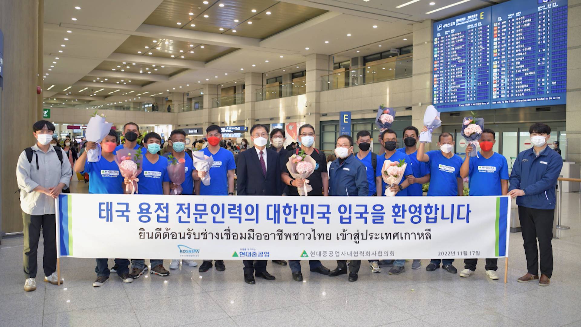 국내 조선업계가 인력난에 시달리는 가운데 오늘(11/17) 태국 국적 조선 숙련 용접공 10명이 입국했습니다.